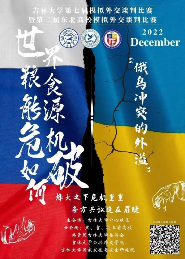 本届比赛将围绕“世界粮食能源危机如何破——俄乌冲突的外溢”这一主题模拟进行多方外交谈判。着眼于非传统安全领域,针对俄乌战争导致的能源和粮食问题进行讨论,让青年一代学子在谈判中切身体会世界的风谲云诡,体验外交的独特魅力。