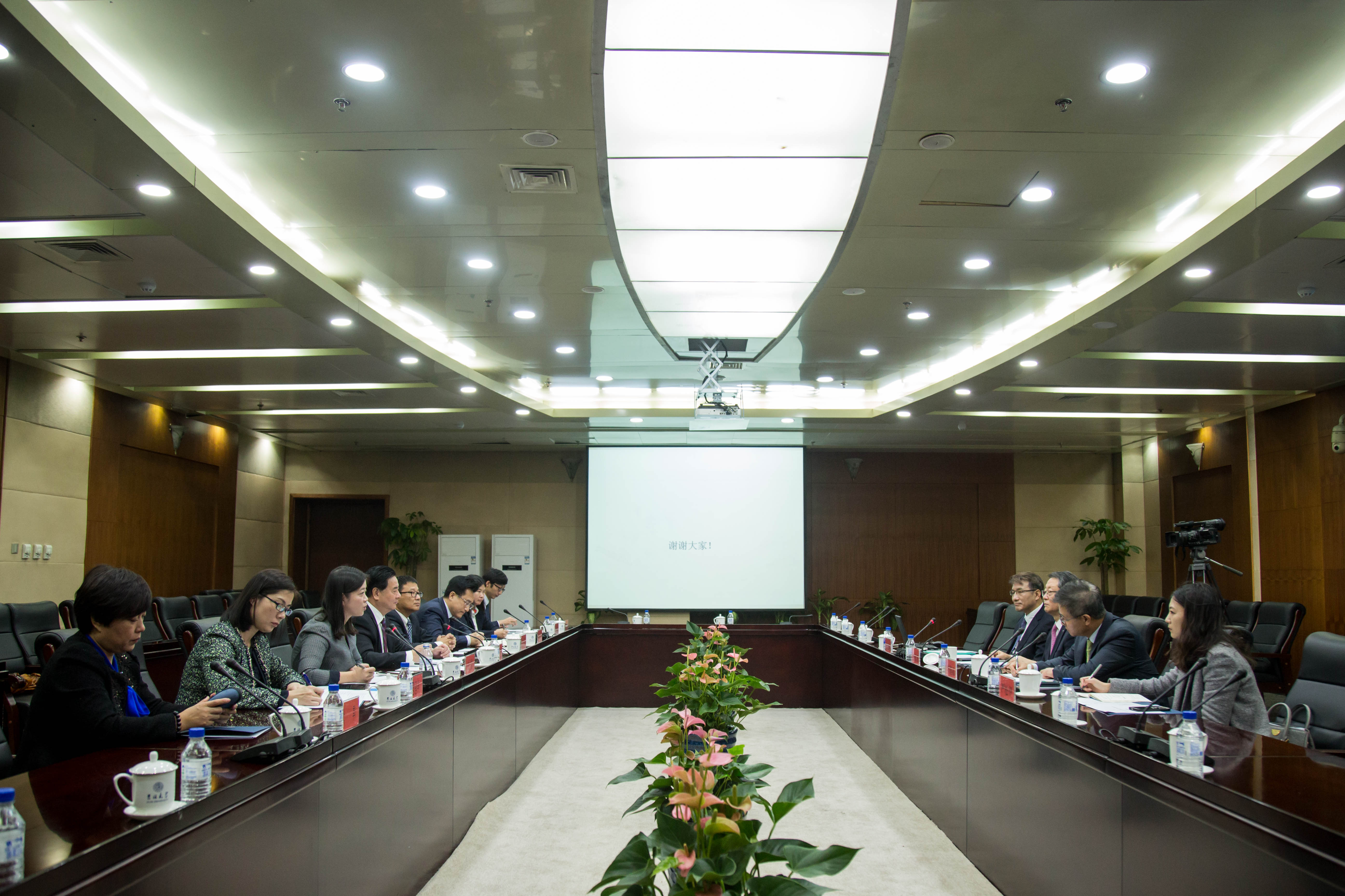 李元元校长在致辞中对李永茂校长代表团的来访表示热烈欢迎,对汉阳大学孔子学院一年来的工作给予肯定,表示我校高度重视同汉阳大学的战略合作,将全力支持汉阳大学孔子学院建设。通过两校的共同努力,一定会把孔子学院办好,依托这个平台,拓宽两校合作领域,深化合作内涵。李永茂校长感谢我校为推动孔子学院建设做出的努力,表示汉阳大学孔子学院将继续探索在汉阳大学校内进一步推广汉语教育的方案,希望通过孔子学院,让更多的韩国人学习汉语,了解中国文化,为中韩两国之间的交流和合作做出贡献。