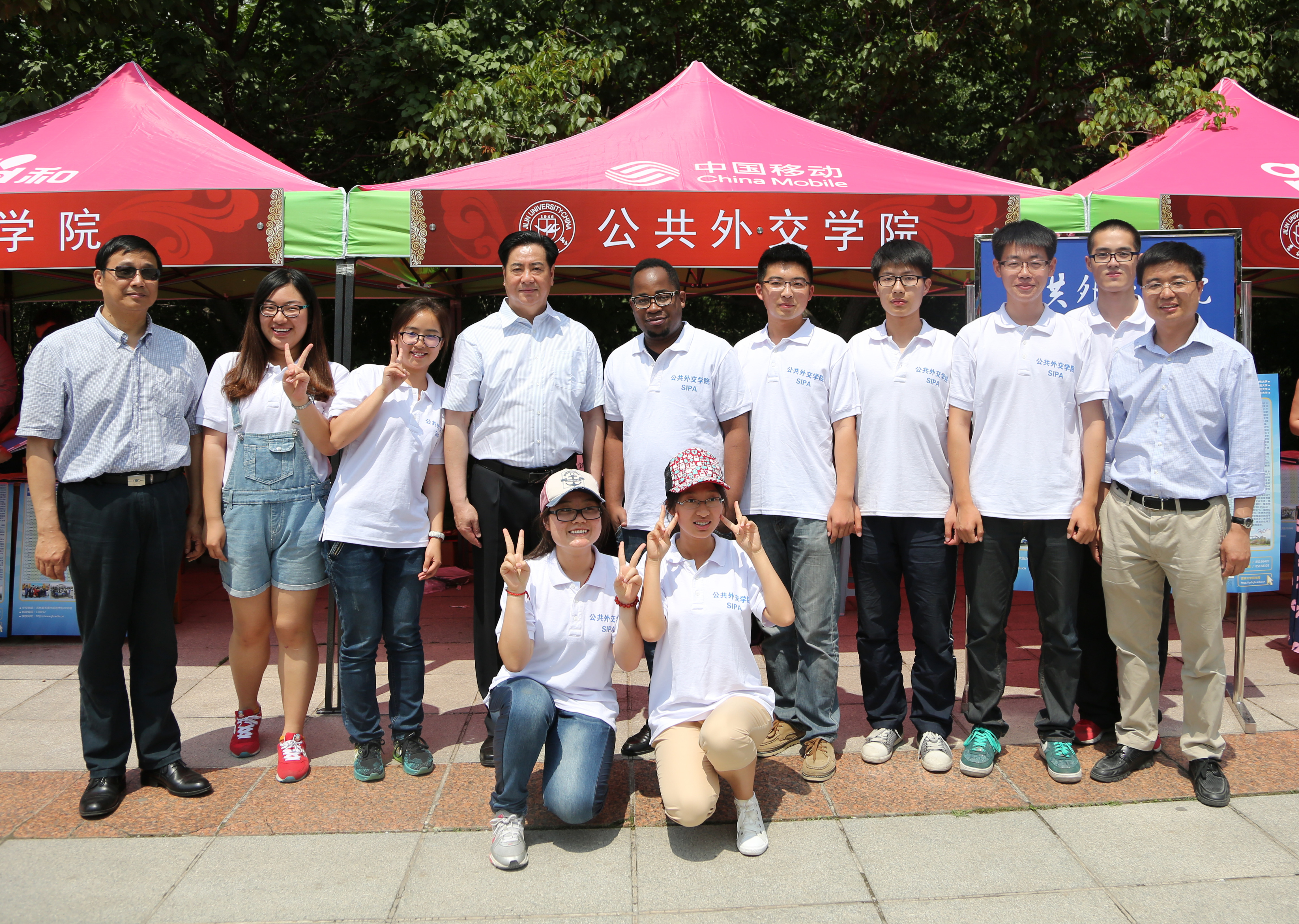 咨询台,并与答疑人员及教师合影留念。