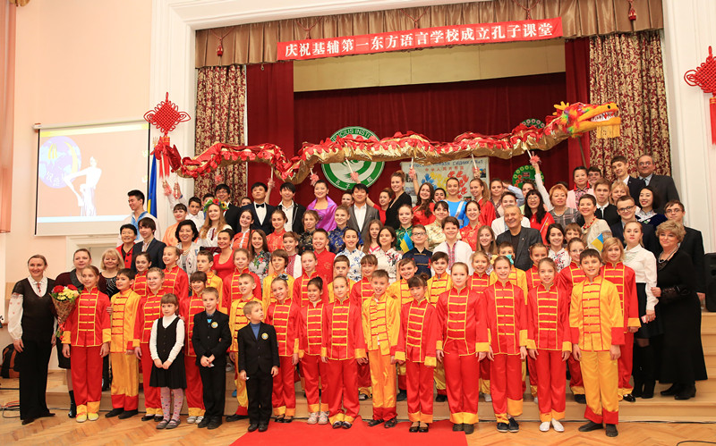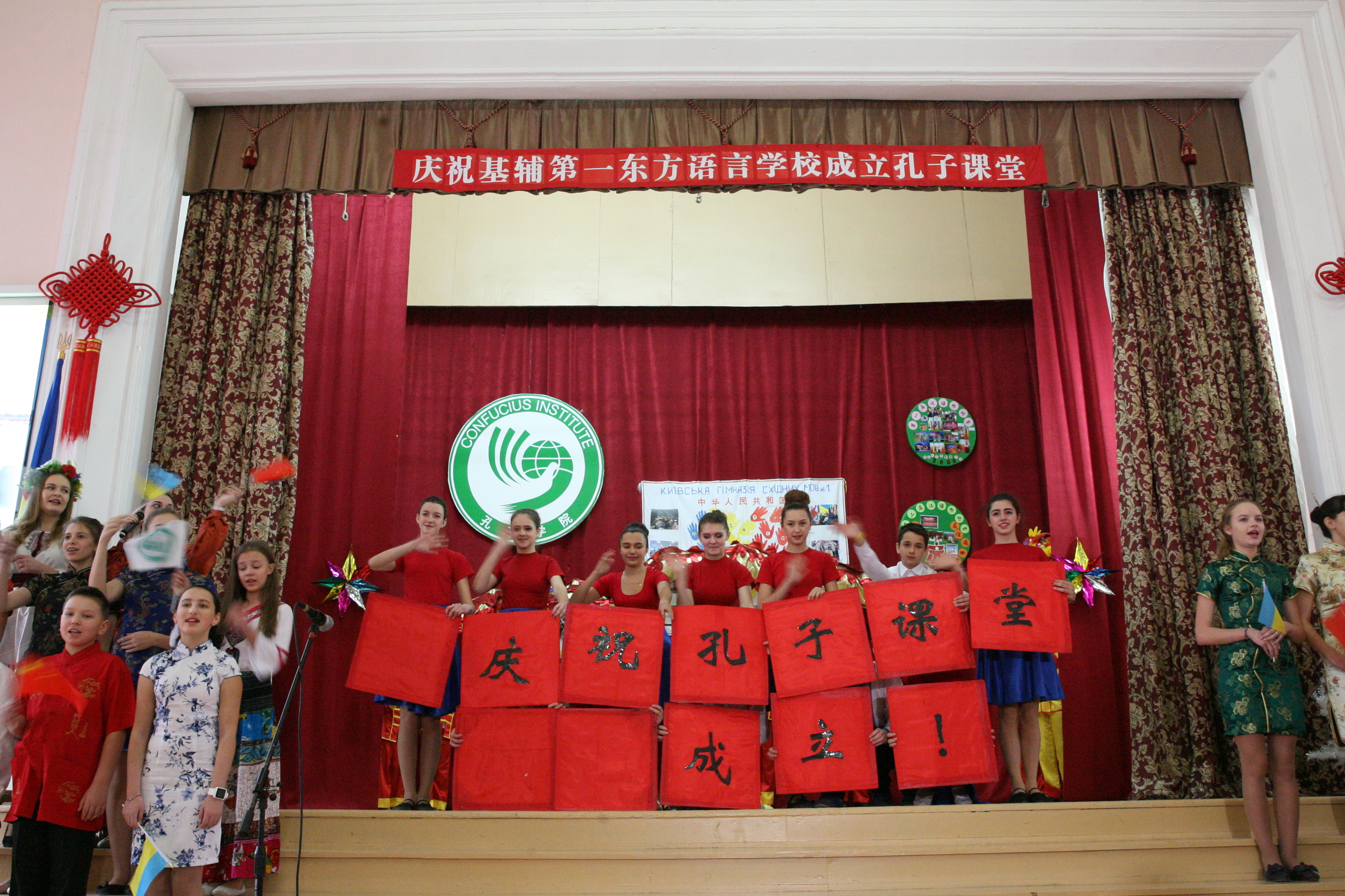 2015年12月22日上午11时,我校乌克兰基辅国立大学孔子学院下设孔子课堂揭牌仪式在基辅第一东方语言学校礼堂举行。中国驻乌克兰大使馆文化处负责人张艳波、乌克兰华商会会长李相、乌克兰工商联合会总经理关羡梅、基辅教育局局长叶莲娜、施韦拖申区区教委主任安娜和乌克兰基辅国立大学孔子学院中方院长李红出席了揭牌仪式。