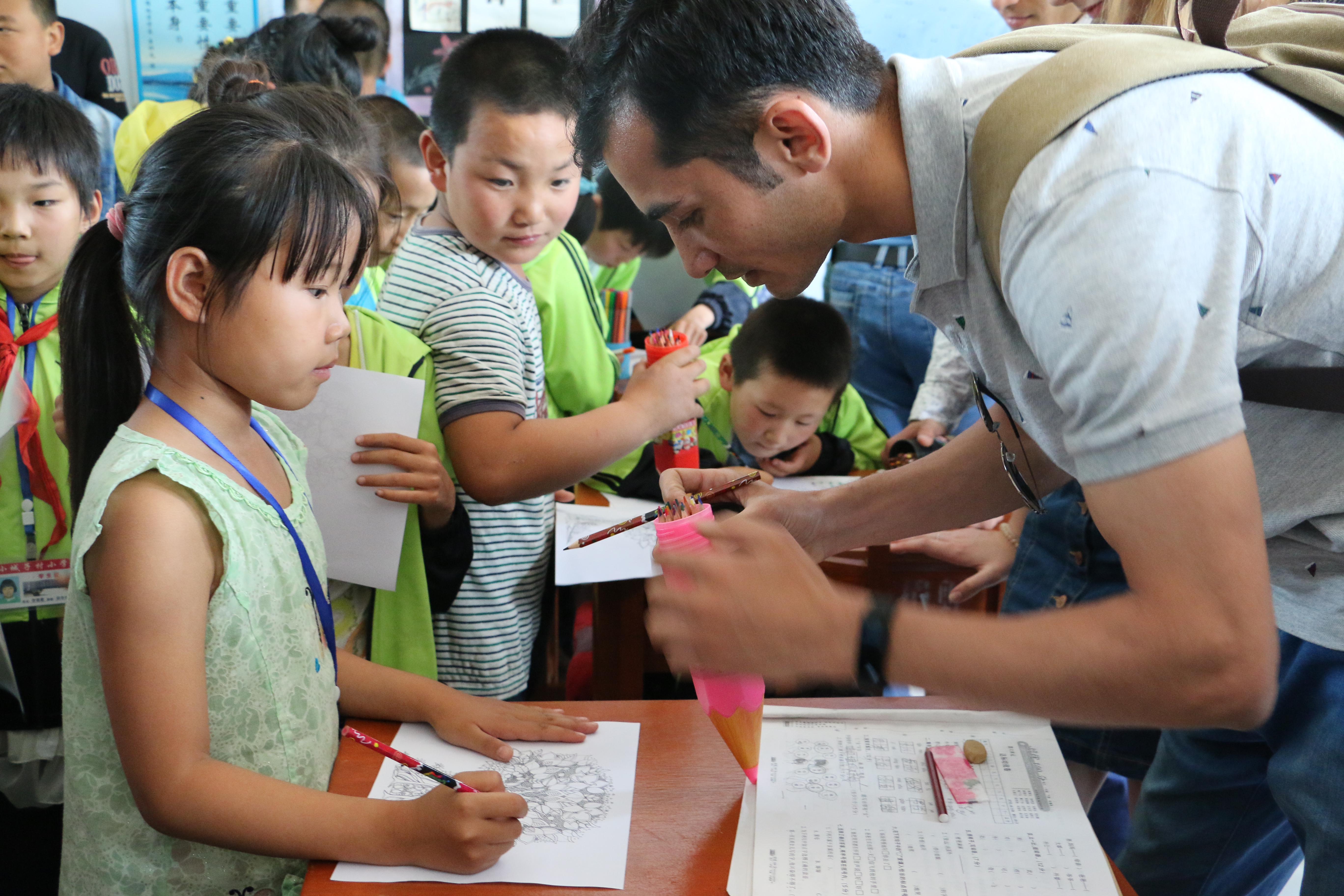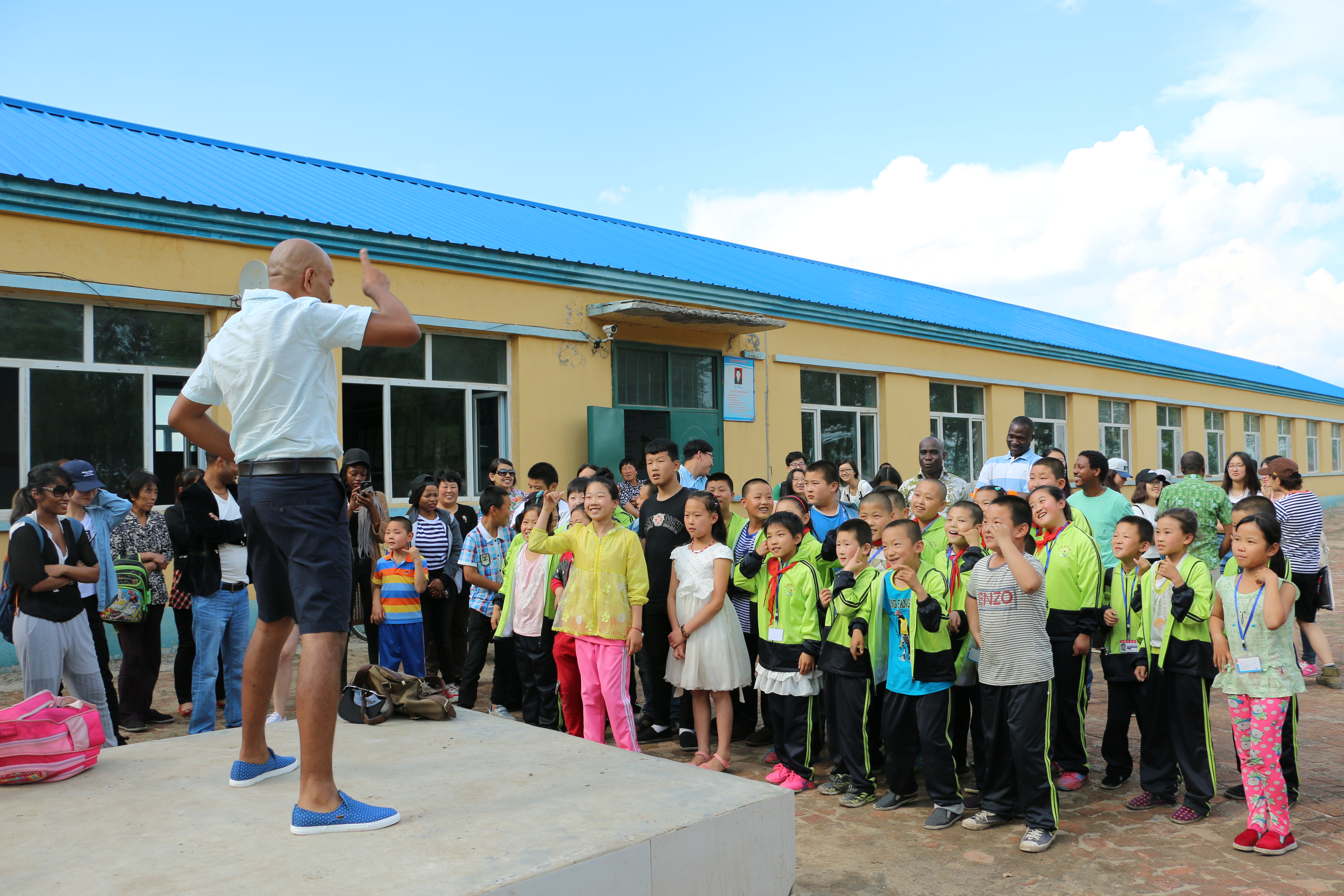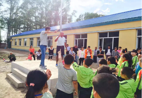 接下来,留学生们组织小朋友走到室外操场进行活动。留学生代表即兴教小朋友们英文歌曲,在留学生热情的带动下,从“Five Monkeys”, 拍手歌,到具有加勒比风情的舞蹈,小朋友们都跟着手舞足蹈,开心地笑着。小城子村小学的教职员工也表达了对看片狂人