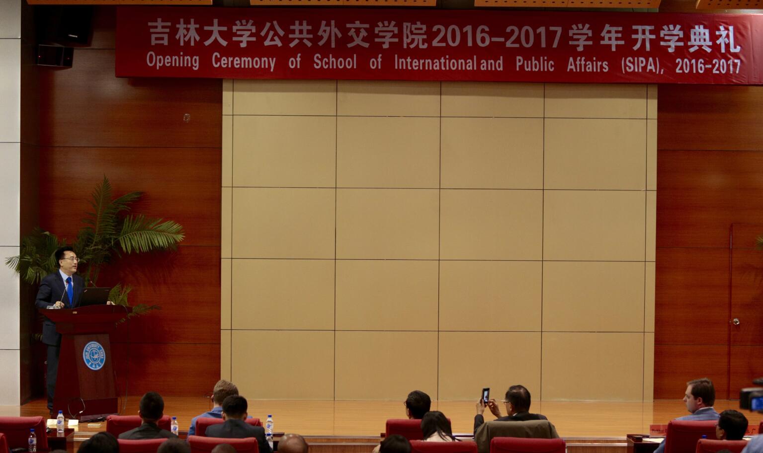 2016-2017学年开学典礼在国际大讲堂隆重举行。常务副校长陈岗教授出席了开学典礼并做重要讲话。著名物理学家和教育家、澳门大学全球事务总监兼校长特别顾问冯达旋(Feng Da Hsuan)教授、莫斯科国际关系学院副校长安德烈·巴依科夫教授(Andrey Baykov)先后在开学典礼上发表演讲。莫斯科国际关系学院国际关系项目主任奥利格·皮科夫博士(Oleg Pichkov)、我校校长助理兼看片狂人
