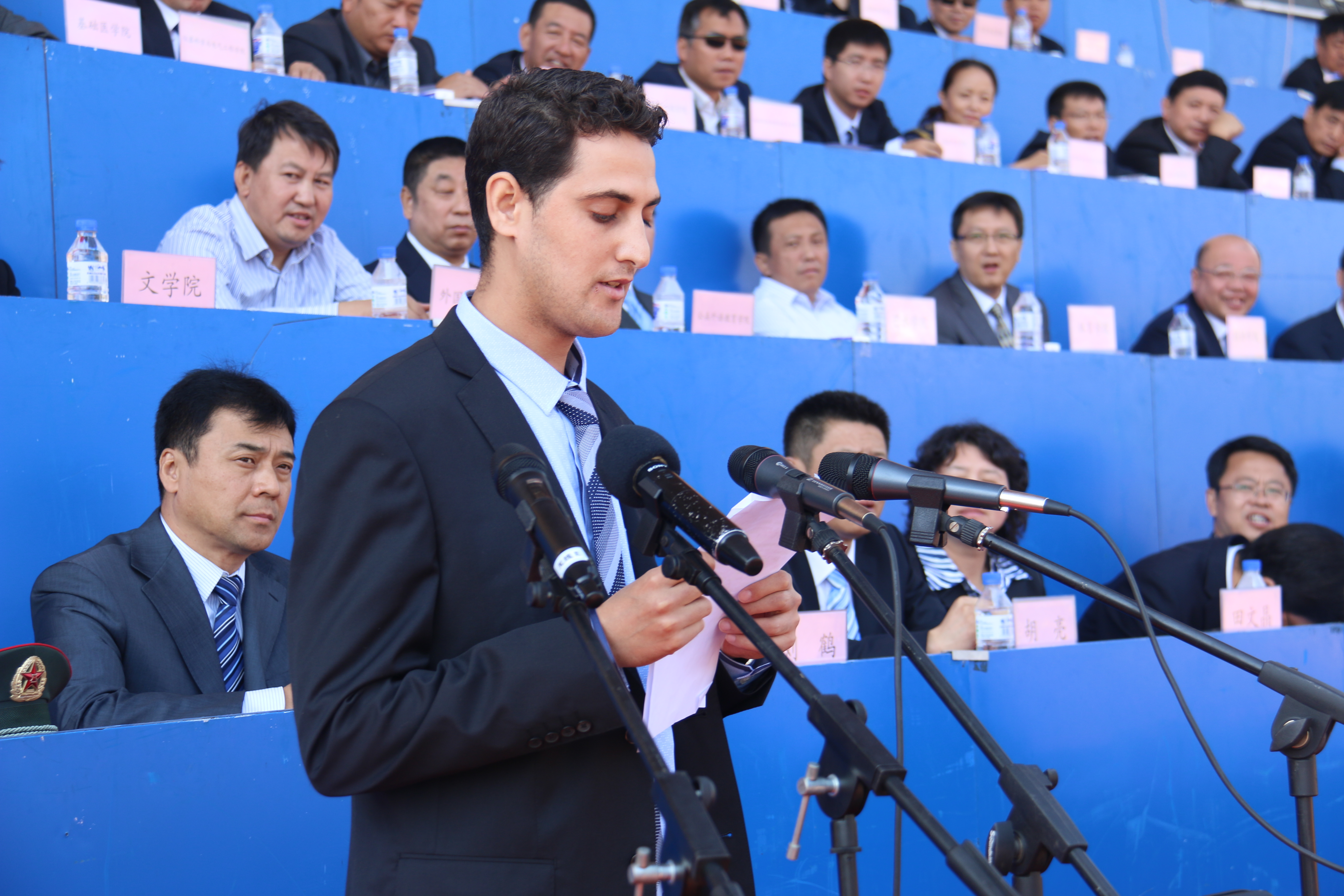 2014级国际关系专业硕士研究生摩洛哥籍的吉米代表全校留学生发言。他在发言中表达了对中国文化的热爱和对未来学习生活的憧憬。他在最后高喊“我爱中国、我爱看片狂人