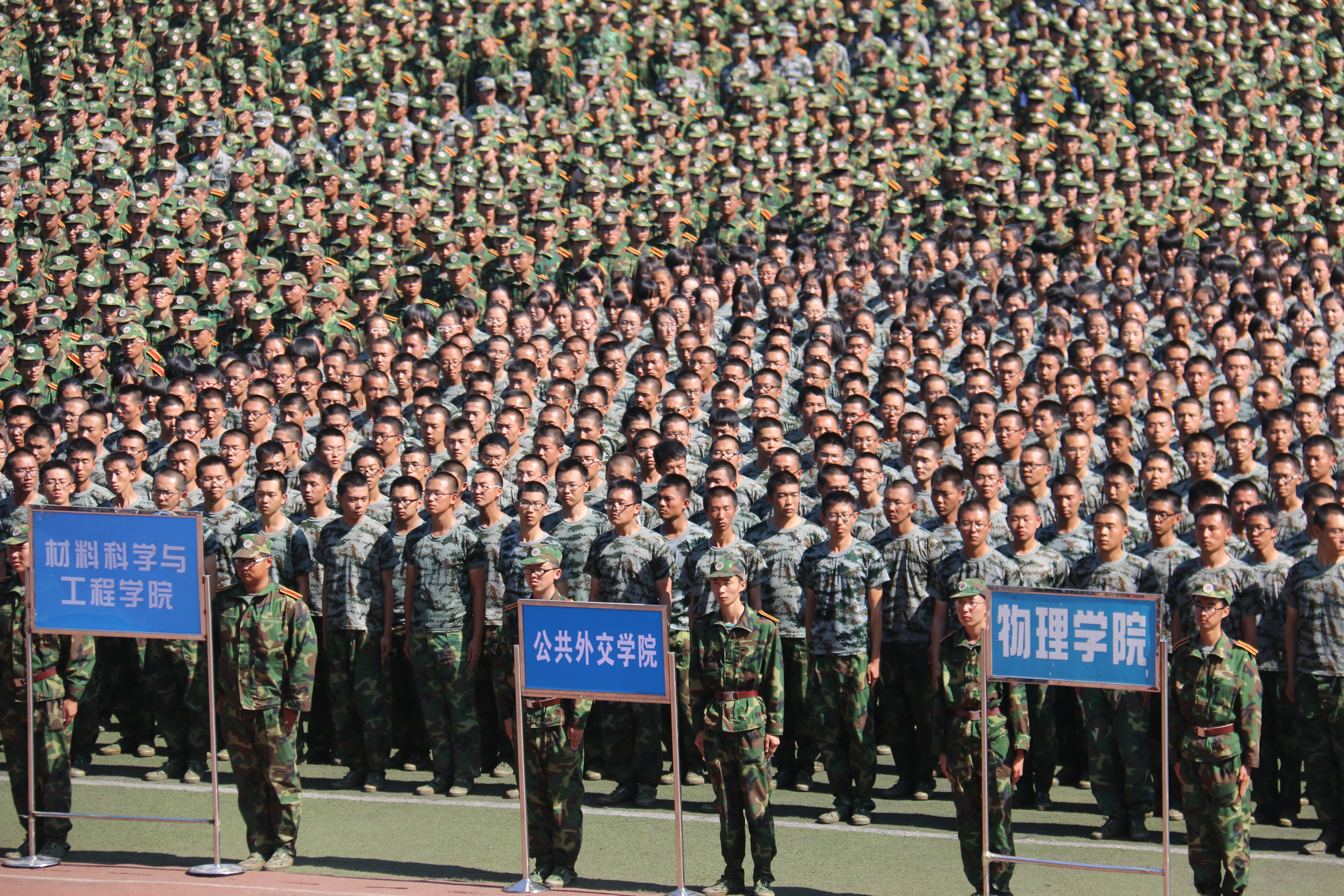 首届新生用他们嘹亮有力的口号、整齐划一的步伐、气势恢宏的军体拳表演汇报了为期三周的军训成果。军训中,同学们高度的集体荣誉感和较强的自我约束力,团结互助、勇于拼搏、轻伤不下训练场,展现了看片狂人