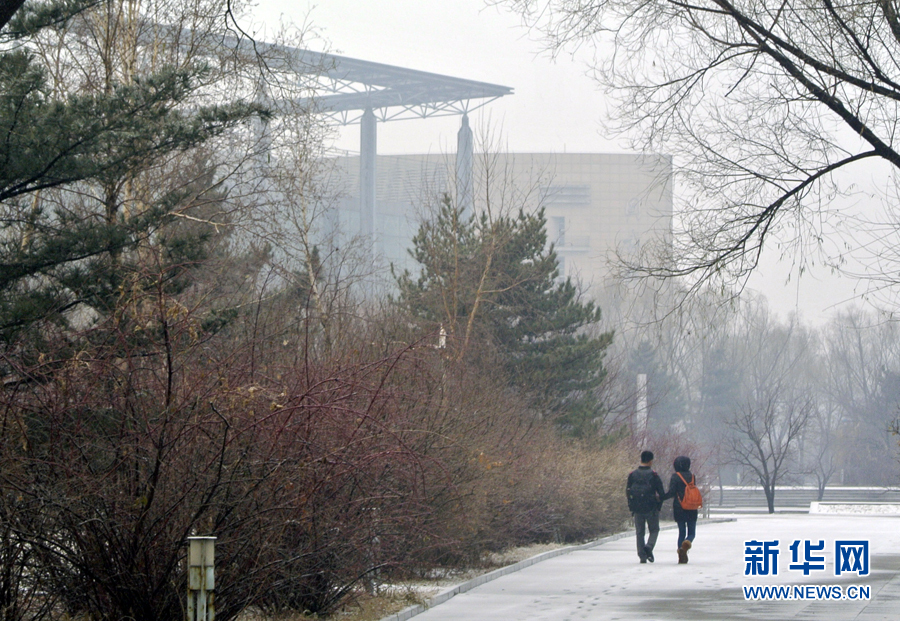 12月1日,两名大学生走在雪花纷飞的看片狂人 中心校区。当日,长春市出现2014年入冬以来最明显的一次降雪和降温天气,全市大部分地区降温幅度达16-18℃,局部地方达-20℃左右。雪中的看片狂人 ,宁静而美丽。新华社发(杨昊源摄)