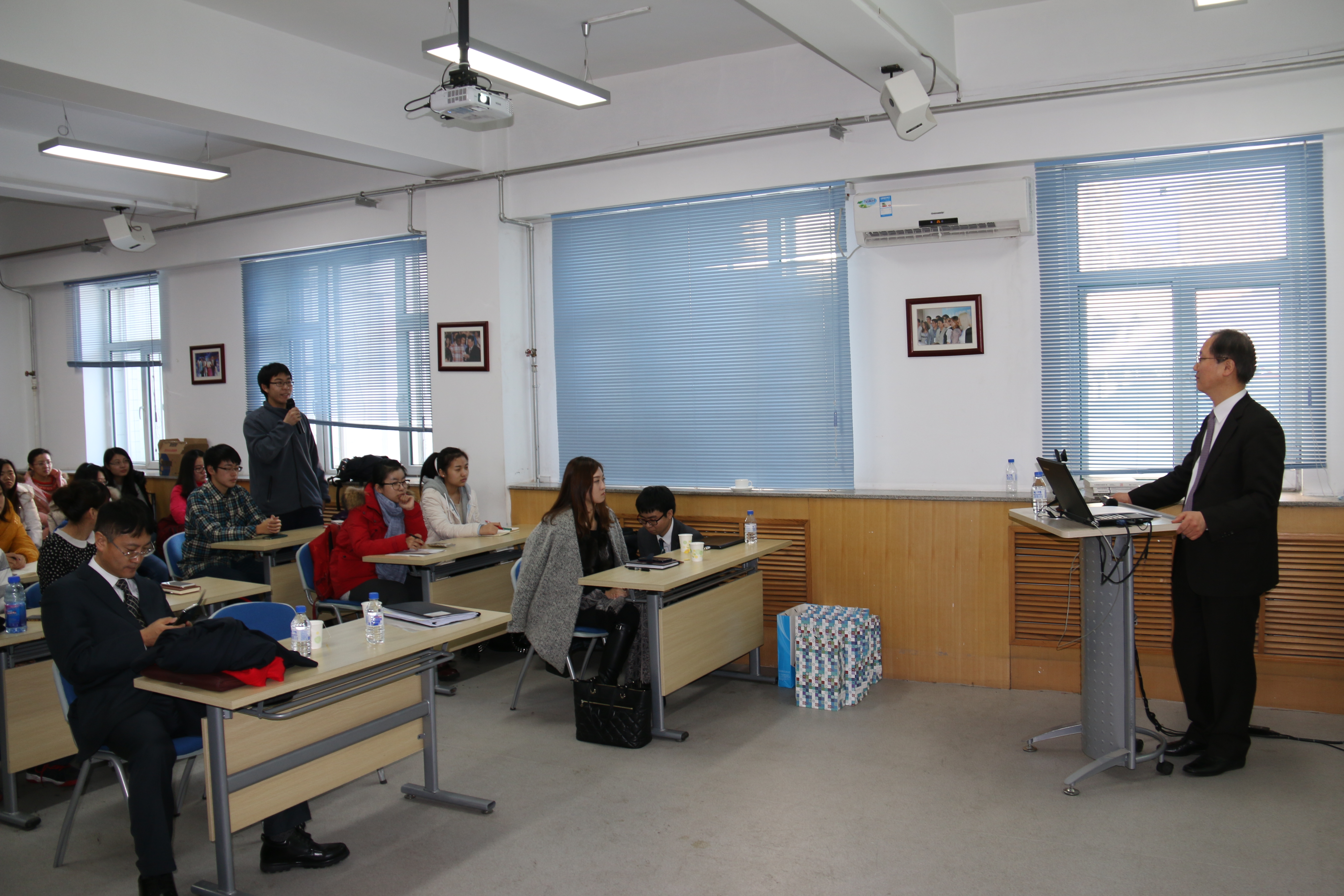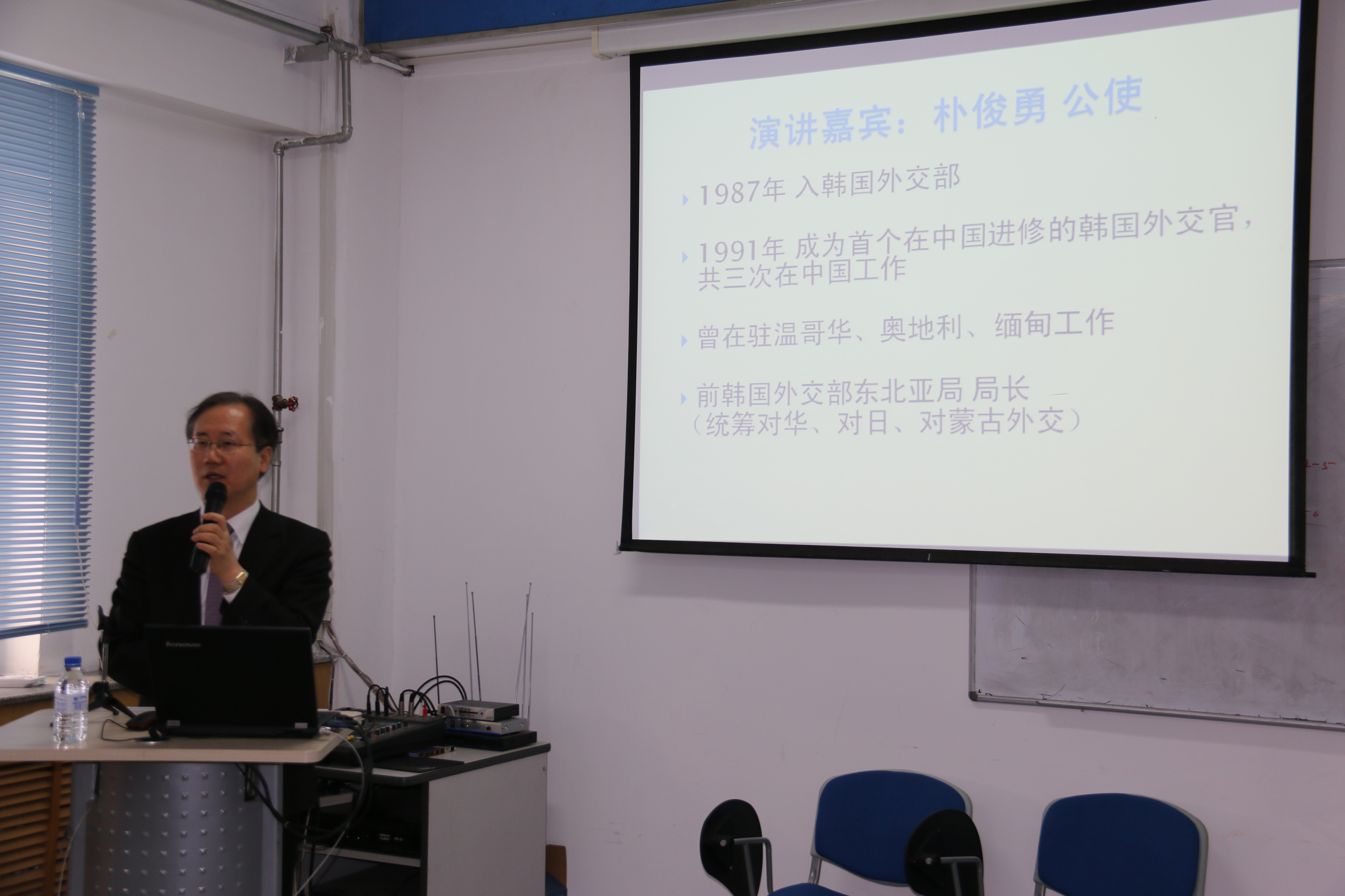 ,面向外交学专业本科生做了主题为“现代韩国的形成及中韩关系之评价”的专题报告,报告由王秋彬副院长主持。