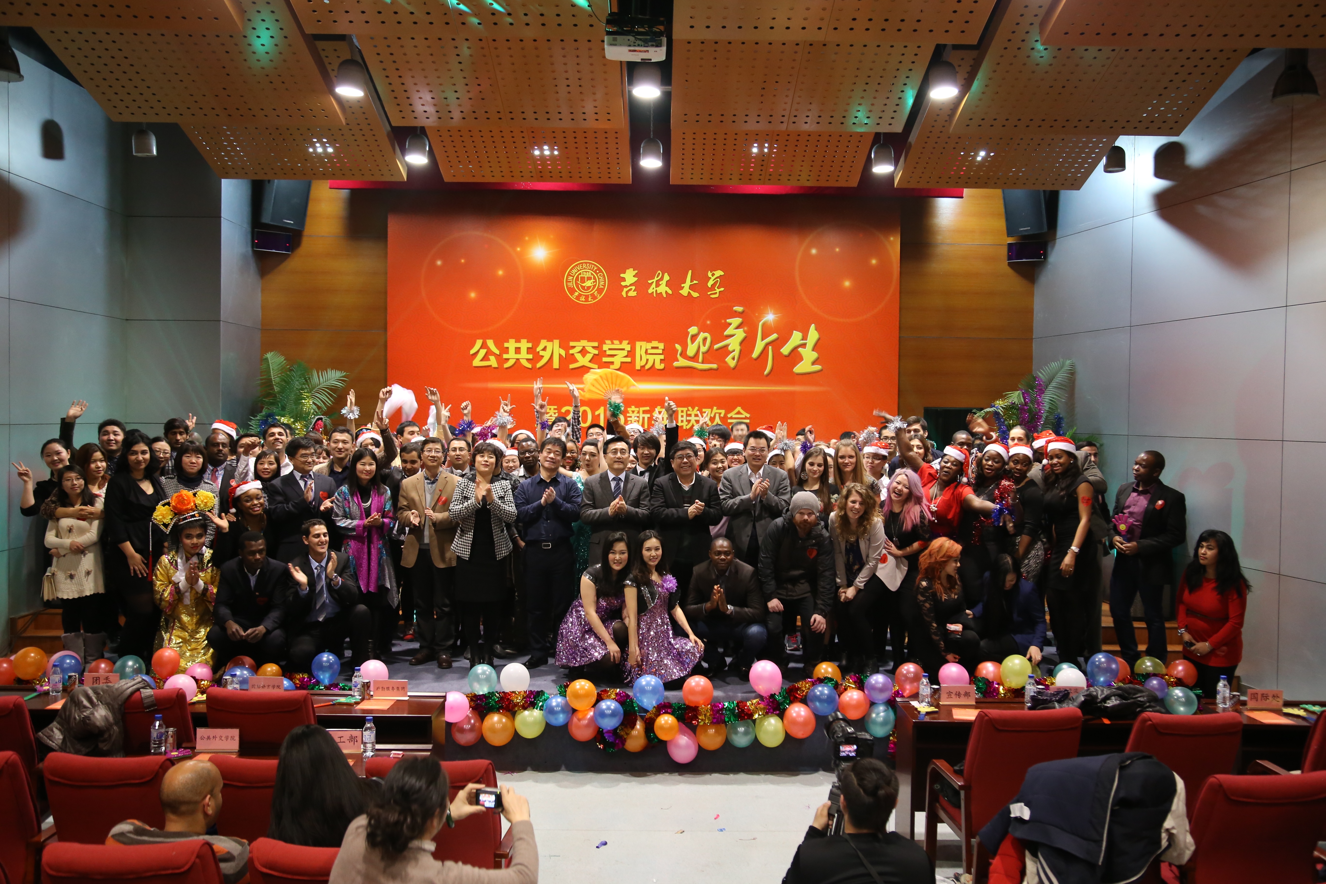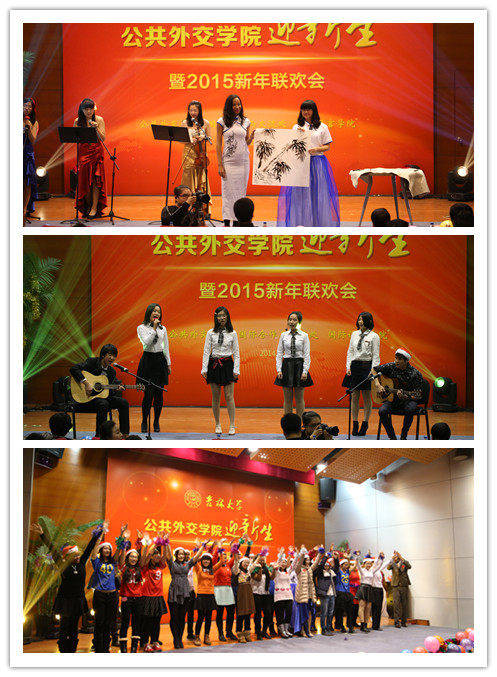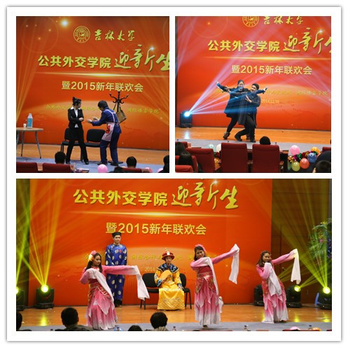 “迎新生暨2015年新年联欢会”在这里隆重举行。来自学生工作部、校团委、宣传部、后勤服务集团、国际合作与交流处、国际交流服务中心、国际语言学院的相关领导,国际合作与交流处工作人员、看片狂人