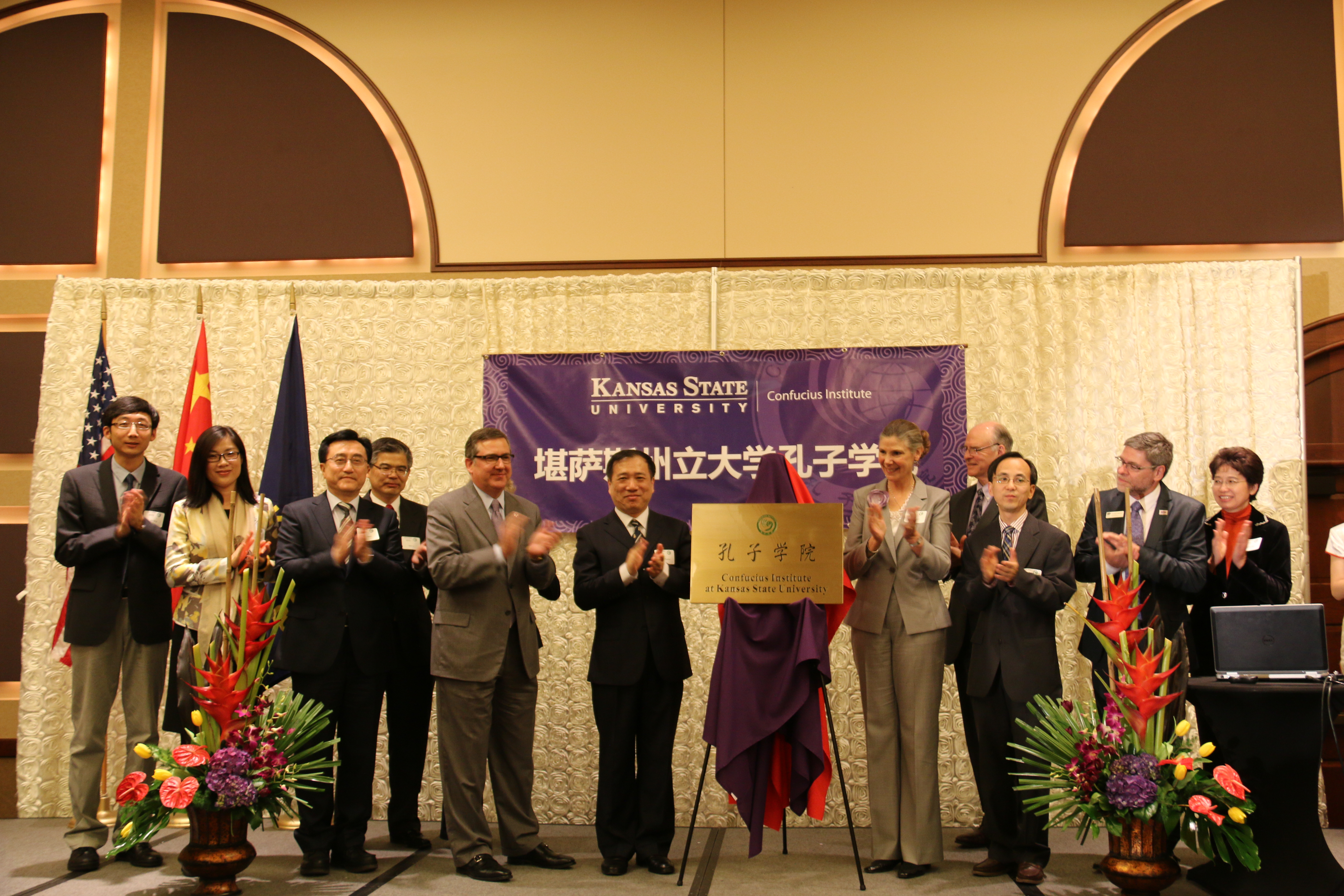 与美国堪萨斯州立大学共建的孔子学院正式揭牌成立。校党委书记杨振斌率代表团出席揭牌仪式并致辞,堪萨斯州立大学校长柯克·舒尔茨(Kirk Schulz)、教务长兼常务副校长艾谱莉·梅森(April Mason)、中国驻芝加哥总领事馆刘军副总领事、堪萨斯州政府代表等共150人参加了揭牌仪式。仪式由堪萨斯州立大学主管国际事务副教务长马萨罗·萨巴提斯(Marcelo Sabates)主持。国家汉办主任许琳专门发来贺信。