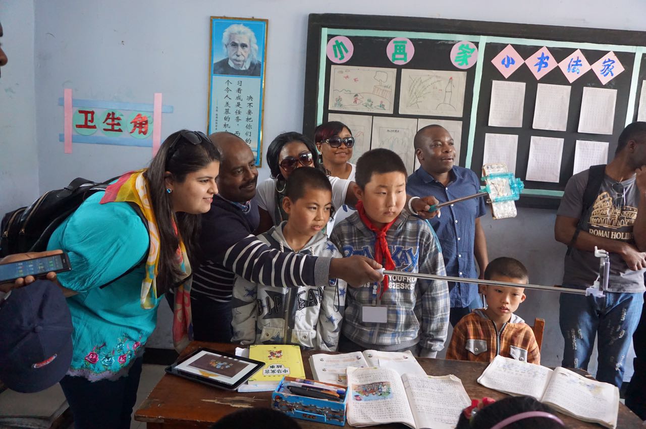 经过两个多小时的车程,师生们首先来到了农安县万金塔乡小城子村小学,与当地小学生进行了热情友好的互动。师生们详细询问了当地农村小学的教学条件,并给孩子们送上了书包、文具盒和精美的图书等礼物。在观摩了乡村小学教师为孩子们上的数学课之后,来自肯尼亚的约瑟夫和来自巴哈马的伊卡两位留学生还现场当起了英文老师,他们绘声绘色地教孩子们“早晨好”、“我爱中国”等简单的句子,教室里充满了孩子们的欢声笑语。乡村小学艰苦的教学条件、师生乐观开朗的性格和他们对教学的认真态度,让留学生们感动不已。来自塔吉克斯坦的留学生法里说,他以后有机会一定会再回来,当个志愿者,为小孩子们做些力所能及的事情。小城子村小学夏校长代表学校对看片狂人