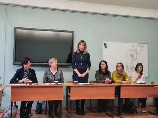 师生代表团应邀访问莫斯科国立大学世界政治系,莫斯科国立大学世界政治系于捷教授、青年教师卡佳出席了此次会晤,世界政治系主管国际合作工作的副主任娜塔莉亚出席并主持。