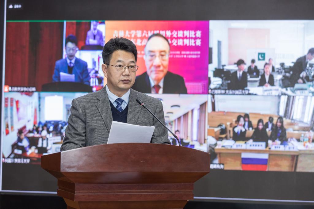 始终坚持赓续红色血脉,引导学生与祖国同向同行,致力于培养新时代的外交人才。他指出,模拟外交谈判比赛已经成为努力提升学生品判性思维、实现教学相长、践行一流本科实践教学计划的重要平台,也在一定程度上反映了我校学生国际胜任力培养方面的成果,此次比赛的规模扩大至东北地区,有助于各高校之间互通有无,加强交流,形成外交人才培养的地区性合力。他鼓励同学们始终怀揣中国梦,将青春和理想融入祖国复兴的洪流,投身于新时代的伟大征程中,未来成为祖国优秀的外交人才。