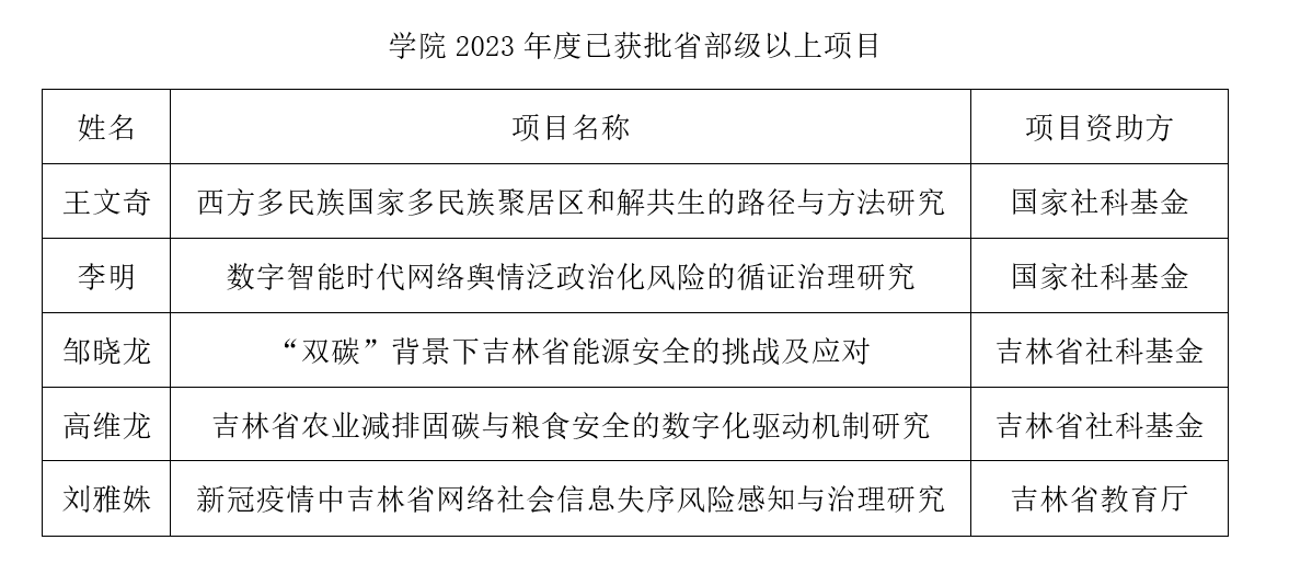 获立项2项,分别是王文奇老师的一般项目《西方多民族国家多民族聚居区和解共生的路径与方法研究》、李明老师的青年项目《数字智能时代网络舆情泛政治化风险的循证治理研究》,实现了学院同年度国社科立项数量新突破。