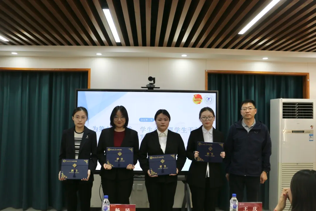 党委书记杨民老师、党委副书记兼副院长王力老师、研究生与留学生工作办公室主任王庆老师、学生工作办公室主任张淑艳老师、团委负责人单葆龙老师出席会议。本次大会由学院团委副书记胡文静同学主持。