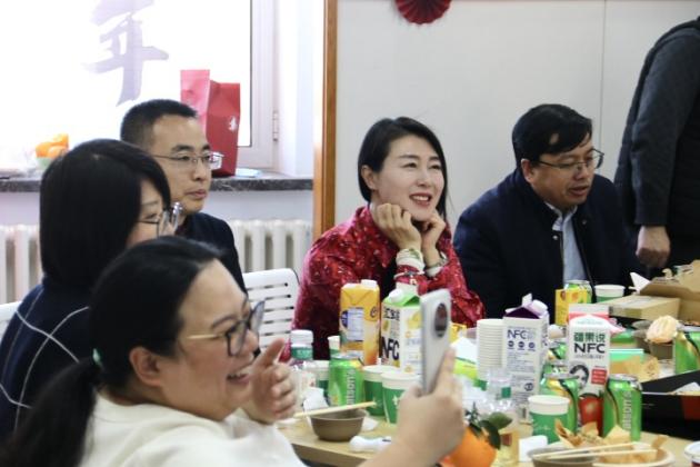 教职工互相分享生活中的趣事,举杯畅饮,共度珍贵时光。