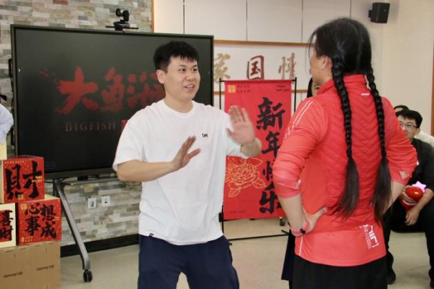 教职工呈现出一场精彩绝伦的视听盛宴。开场舞《拜新年》以欢快的节奏和喜庆的氛围,展示了无限活力与激情,将祝福与欢乐传递到现场的每一个角落。敦煌舞《壁上观》以独特的舞姿和深厚的文化底蕴,带领观众穿越时空,领略了丝绸之路的辉煌历史和多元文化。歌曲《大鱼》用音乐诉说心声,将真挚的情感传递得淋漓尽致,让教职工们仿佛置身于音乐的海洋之中,陶醉不已。诗朗诵《沁园春·雪》大气磅礴、震撼人心,让观众们感受到了毛泽东同志“改造中国与世界”的宏伟理想和乐观自信,表达了在新的长征路上坚定不移跟党走的政治信念。