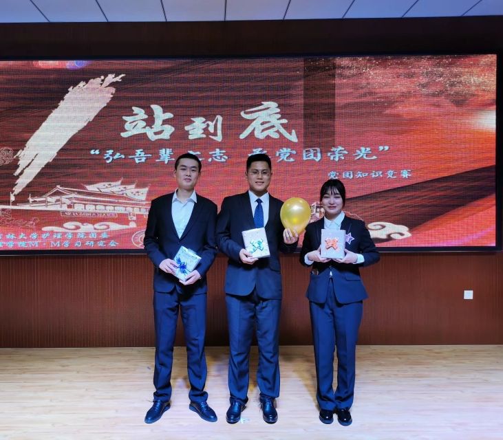 参赛选手郑樾同学在前期准备时,积累了大量的党政知识,成竹在胸。在现场与各学院选手竞答的高压时刻,能保持从容淡定,为学院赢得高分。