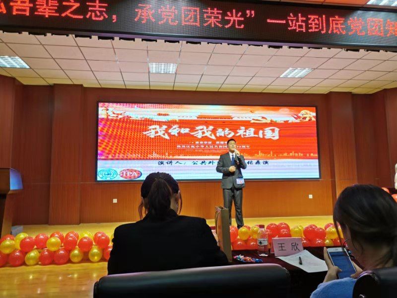 参赛选手张鼎演同学赛前曾多次与其余二名队友讨论,在听取意见后多次修改演讲稿,并在户外反复练习,较强地掌握了演讲语调的变化及情感的表达。张鼎演同学以“我和我的祖国”为主题,演讲诙谐幽默,与观众互动频频,获得了各位嘉宾评委的一致好评。