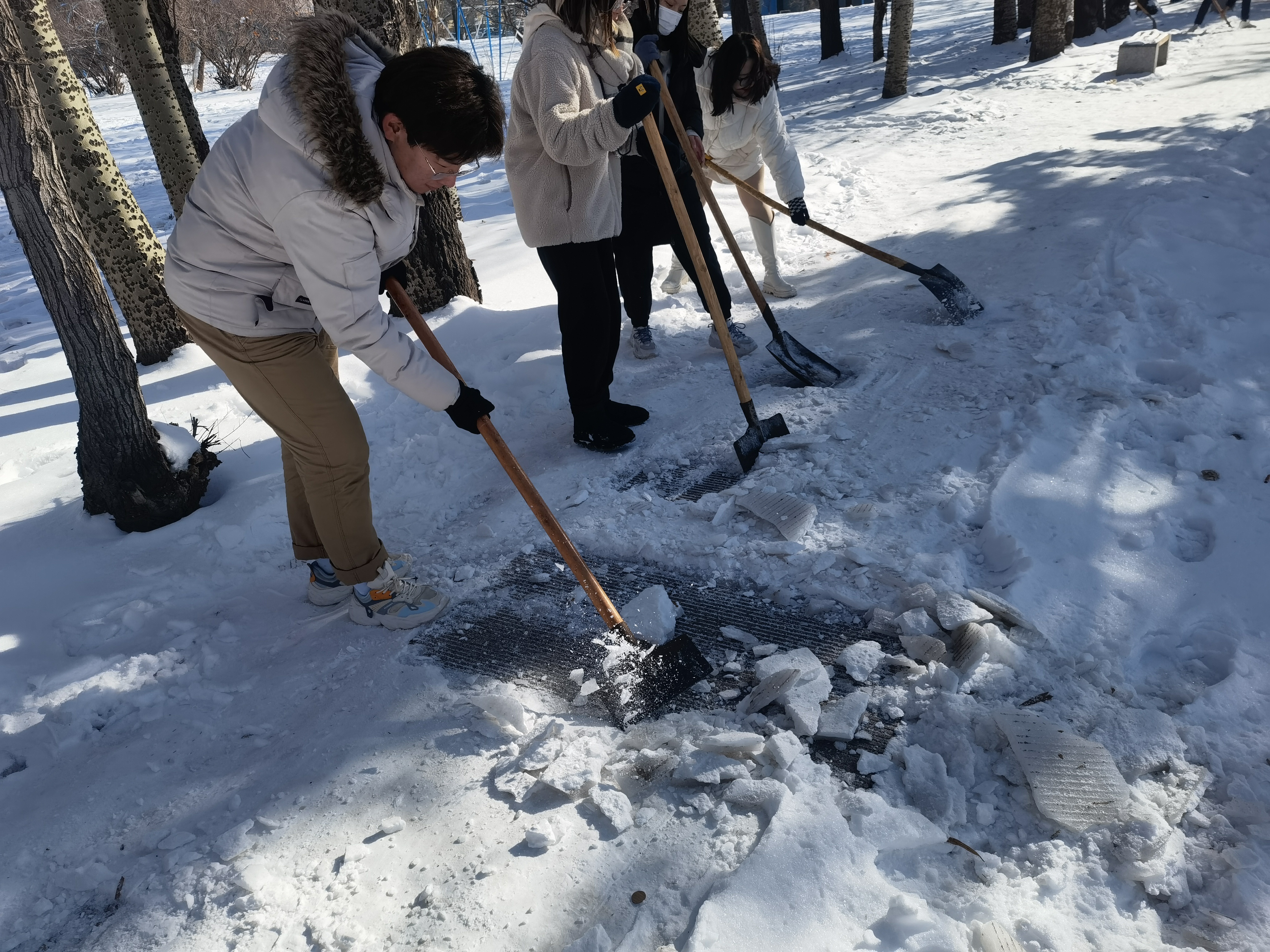 下过雪后的吉大校园,一片洁白宁静的景象,处处显出北国风光的独有魅力。然而雪后气温寒冷,降雪频繁,雪后校园道路结冰,对师生出行造成了极大困扰。为了全面发挥入党积极分子的先锋模范作用,培养服务意识、责任意识和奉献意识,贯彻学院劳动教育的精神宗旨,同时更是为了校园师生的安全出行,避免走路打滑摔跤,为校园增添一份温情。11月12日中午,看片狂人