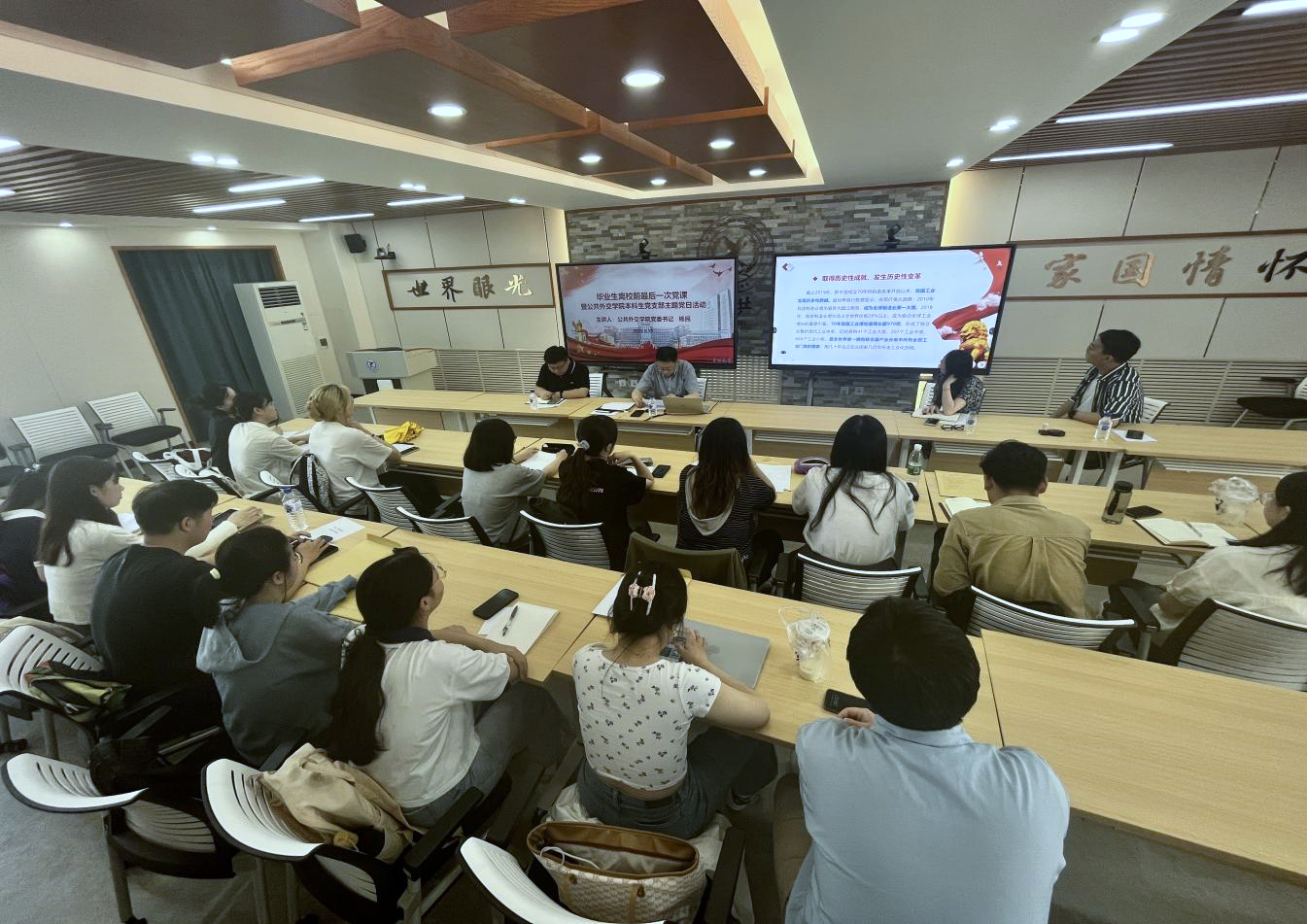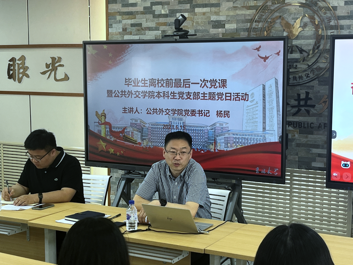 本科生党支部于6月15日在吕振羽楼818多功能厅开展了毕业生离校前最后一次党课暨支部主题党日活动,活动邀请到学院党委书记杨民老师进行主讲,由支部书记张淑艳老师主持,本科生党支部全体在校党员参加。