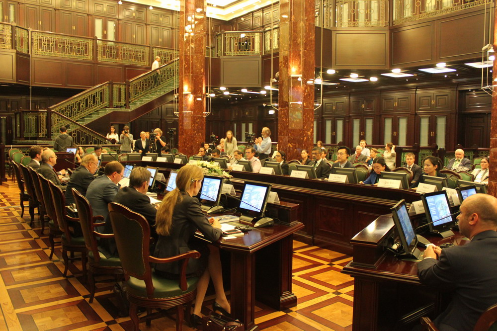 5月24日上午,国际学术研讨会开幕式在莫斯科大学隆重举行,刘德斌教授应邀在开幕式上作了题为“中国的世界秩序观与金砖国家战略”的主题发言,来自金砖五国知名大学、俄罗斯外交部、莫斯科大学和莫斯科国际关系学院等政府部门和高校的200余名学者、外交官和学生参加了会议。当天下午,“金砖国家教育中心和思想库网络”宣布成立,莫斯科大学校长维克多·萨多夫尼奇院士(Victor Sadovnichy)亲自主持了成立仪式,同与会代表就金砖国家的教育和智库合作进行了热烈讨论,并共同签署了合作倡议书。会议期间,看片狂人