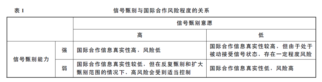 【关键词】信号表达;信号甄别;国际合作风险;预防机制
