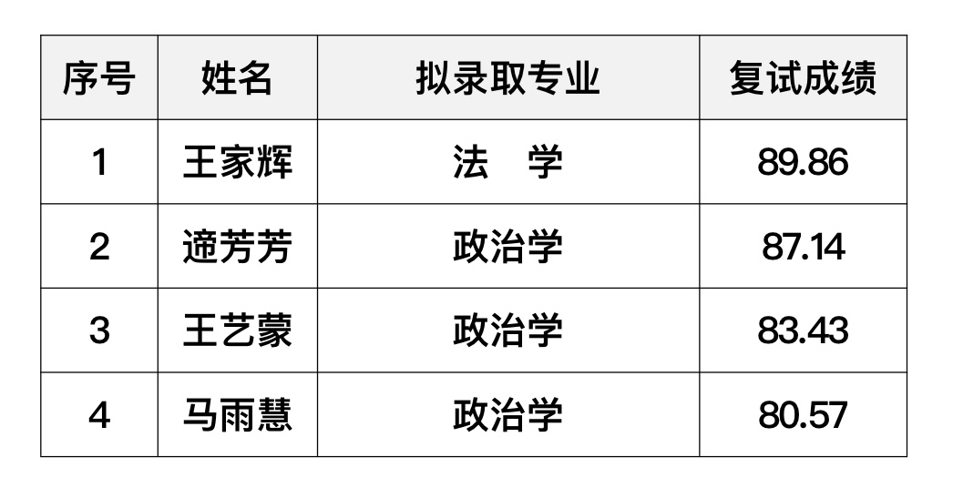 国家发展与安全研究院2021年硕士研究生推免复试拟录取名单如下,如对复试拟录取名单有异议,请在名单公布之日起三日内向我研究院反映。