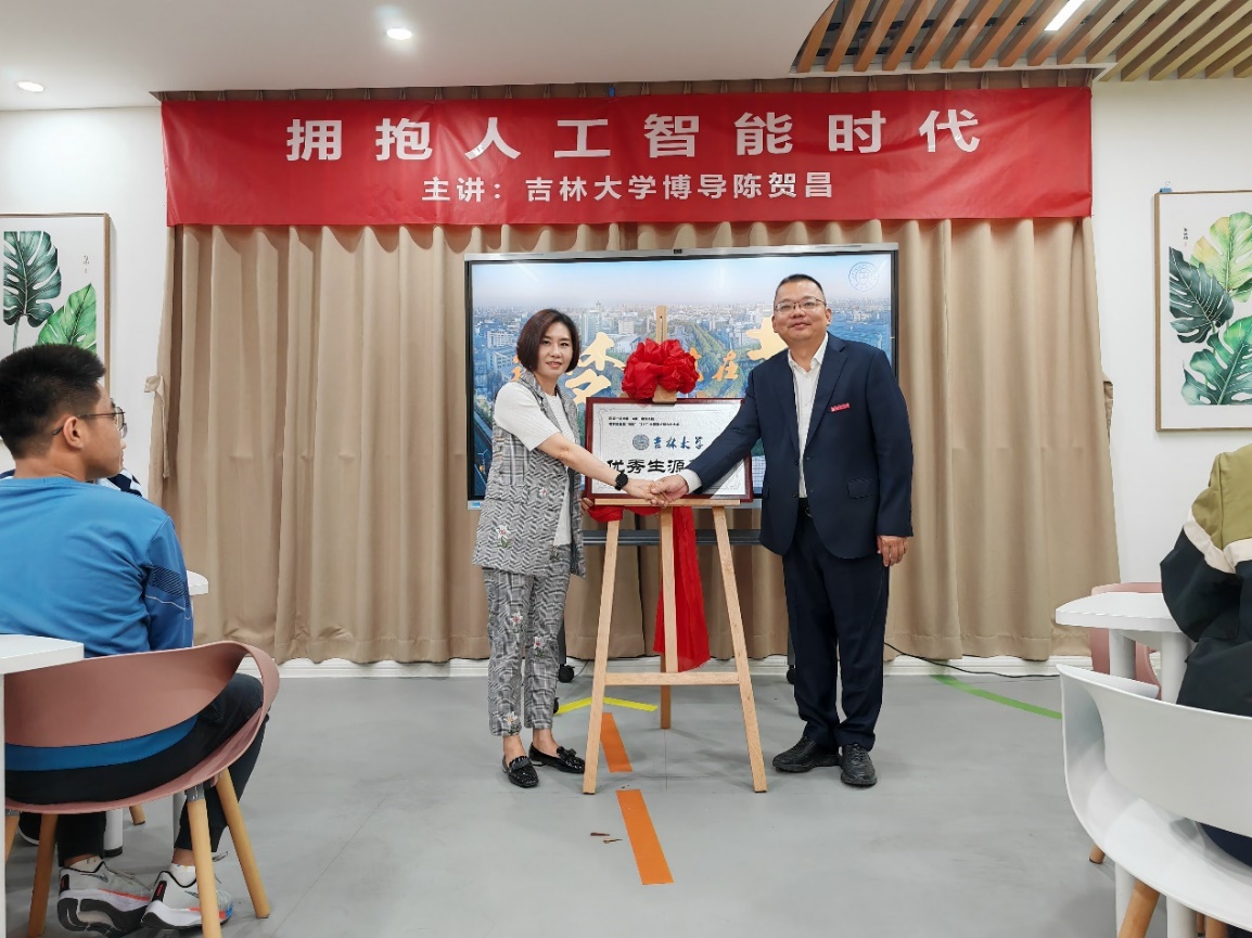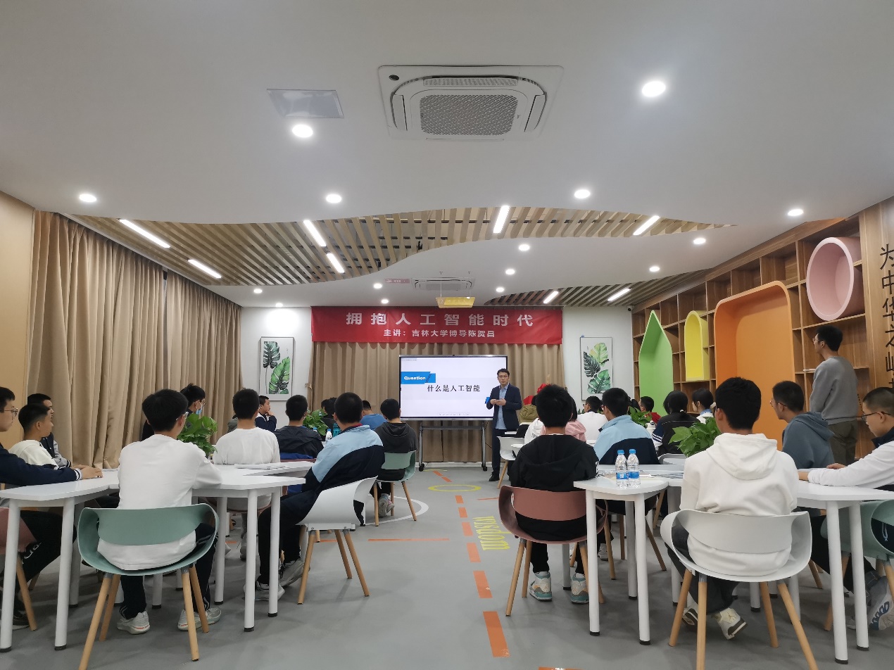 优秀生源基地”牌匾。陈贺昌老师以“拥抱人工智能时代”为主题向与会师生介绍人工智能的发展简史、战略地位和未来趋势,并介绍看片狂人