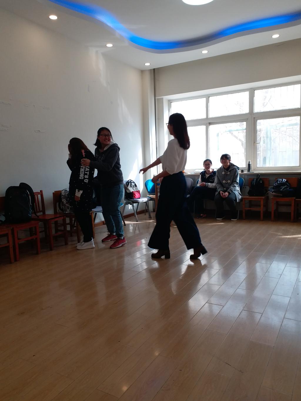 活动以自由表演的形式开展了一系列互动小环节,寓教于乐,使同学们在轻松愉快的氛围中自然而然融入集体氛围,提出疑惑。第一个环节是放松,每位同学在说完自己的名字之后做一个自认为最放松的姿势,其余同学说出这位同学的名字并重复他的动作,在一轮结束之后抽了三位同学的动作,放松之余考验了同学们的记忆力;第二个环节为“情绪大头贴”,此环节能使同学们在有限的时间内发挥想象力,将手中的情绪卡串联起来表演出一个完整的故事,提高了同学参与此次主题班会的积极性;第三个环节为“保密环”,各位同学用右手组成一个环,保证保密原则。在最后一个环节“情景剧编演”中,同学们展现出了非凡的创造力与表演力,热闹非凡,大部分同学对所表演的剧情都有自己独到的见解,朋辈心理辅导员也解答了具有代表性的问题。在临近结束的时候,每个同学在白纸上写下对此次主题班会的看法,并与大家分享。