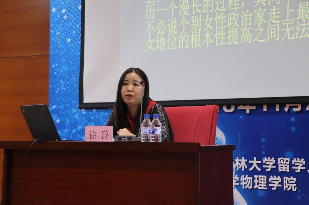 文学院世界史系徐萍教授作为“当代国际舞台上女性政治家的权力巅峰之路”的讲座,博士兼职辅导员孔泽鸣老师主持了本次活动。