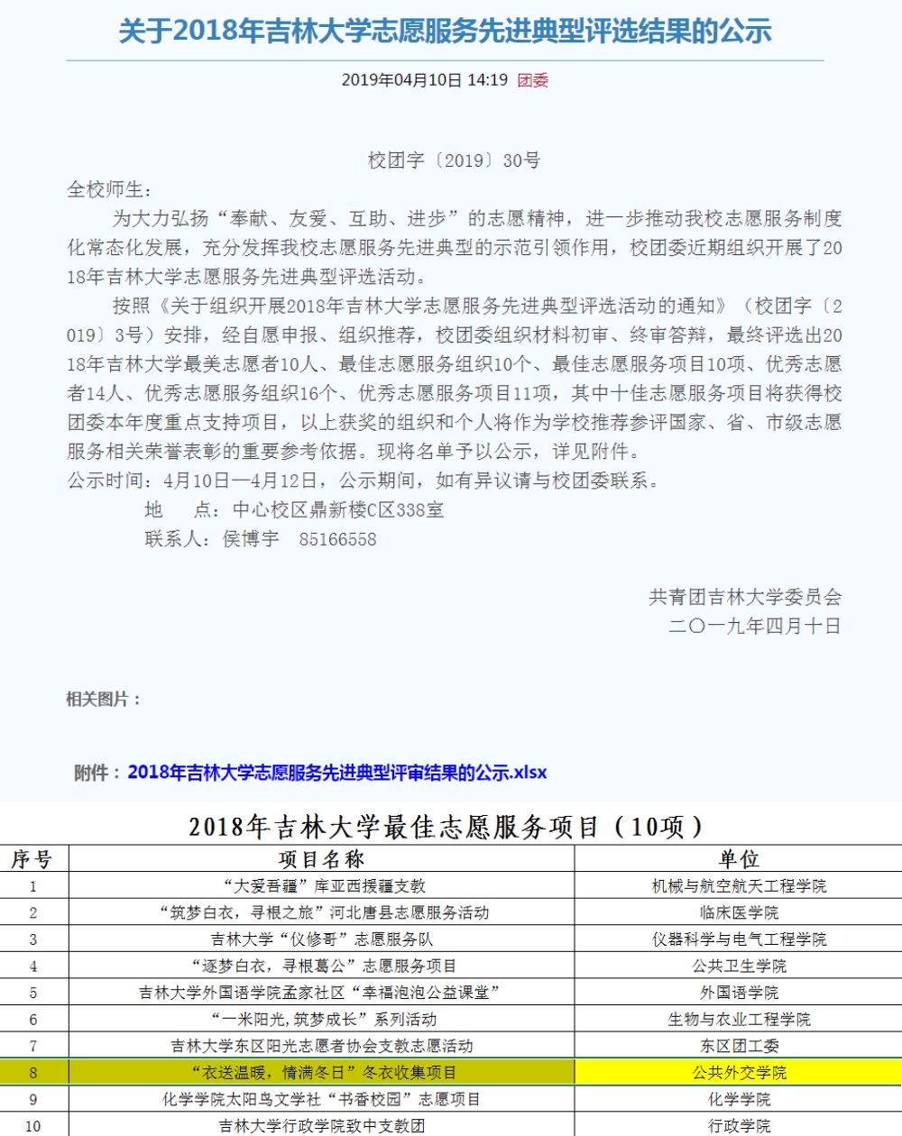 年度最佳志愿服务项目(全校10项)。