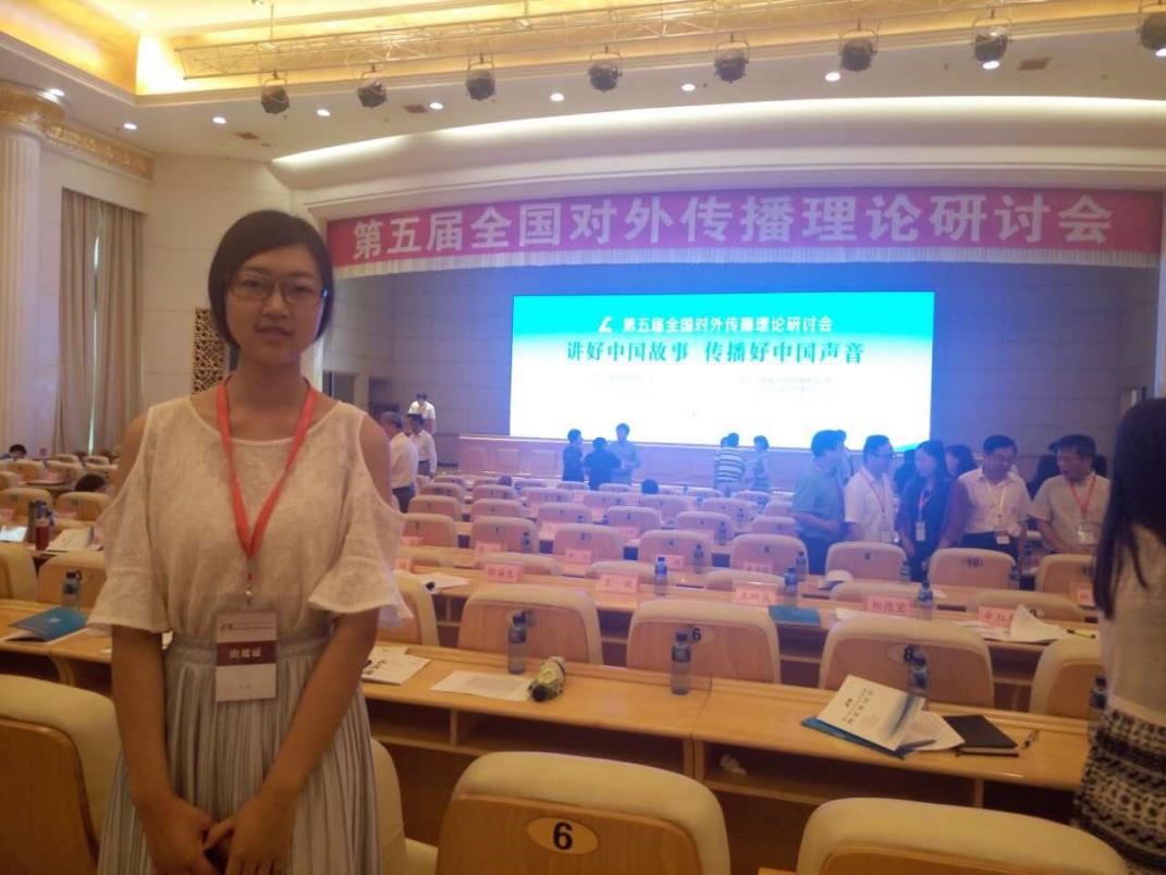 2015级学生杨冬婉参加此次研讨会并参与主题讨论,其论文《“一带一路”在外国留学生中的传播效果现状及建议——基于对看片狂人