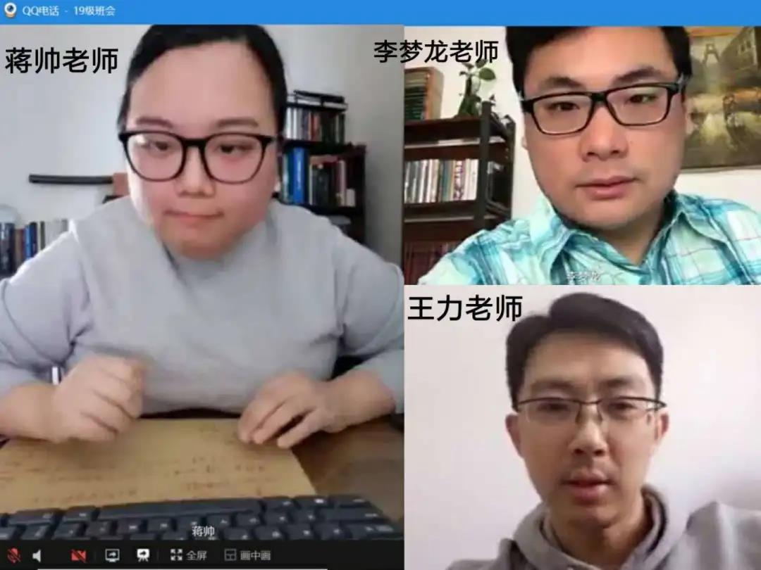 本次班会主要分为两个部分,第一部分是三位老师针对同学们各方面的问题进行集中答疑,第二部分是同学们就疫情期间在家学习相关主题进行分享交流。