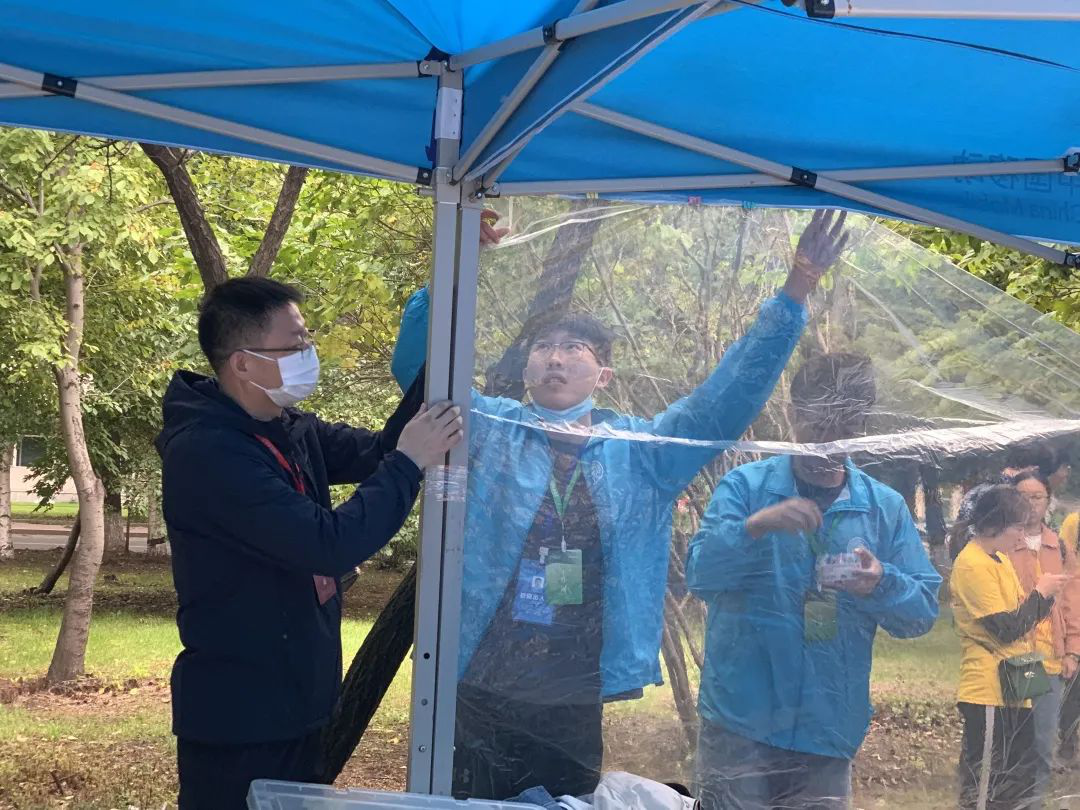 第六届团委学生会的工作人员们准时于学院迎新工作站集合,为接下来为期三天的迎新接待工作做到充分的前期准备。志愿者们身穿蓝色上衣,分工明确、各司其职,顺利完成了桌椅搬运与摆放、迎新物资准备和迎新现场布置等相关工作。