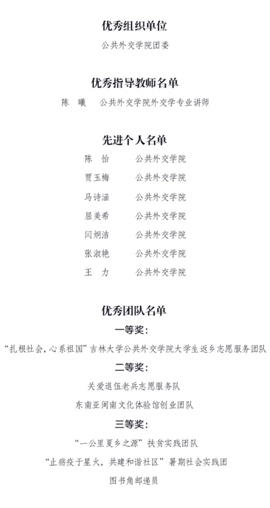 寒暑假社会实践活动优秀组织单位;陈曦获优秀指导教师;陈怡等7名师生获社会实践活动先进个人;“扎根社会,心系祖国”看片狂人