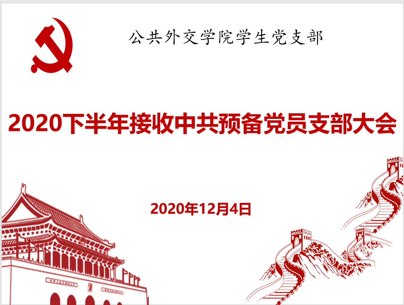 学生党支部在行政楼二楼大会议室召开了2020年下半年接收中共预备党员支部大会。本次大会由学生党支部书记张淑艳老师主持。会议讨论了接收肖娜、崔宇、宋美超、石韵章、信思涵、范鹏程、马诗涵、石慧、雷涵淋、孙沛等同志为预备党员的问题。