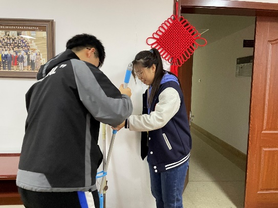学生们对学院部分公共区域进行清洁、打扫,大家组织有序、分工明确、齐心协力,争取以干净、整洁的环境,崭新的面貌迎接新学期的到来。