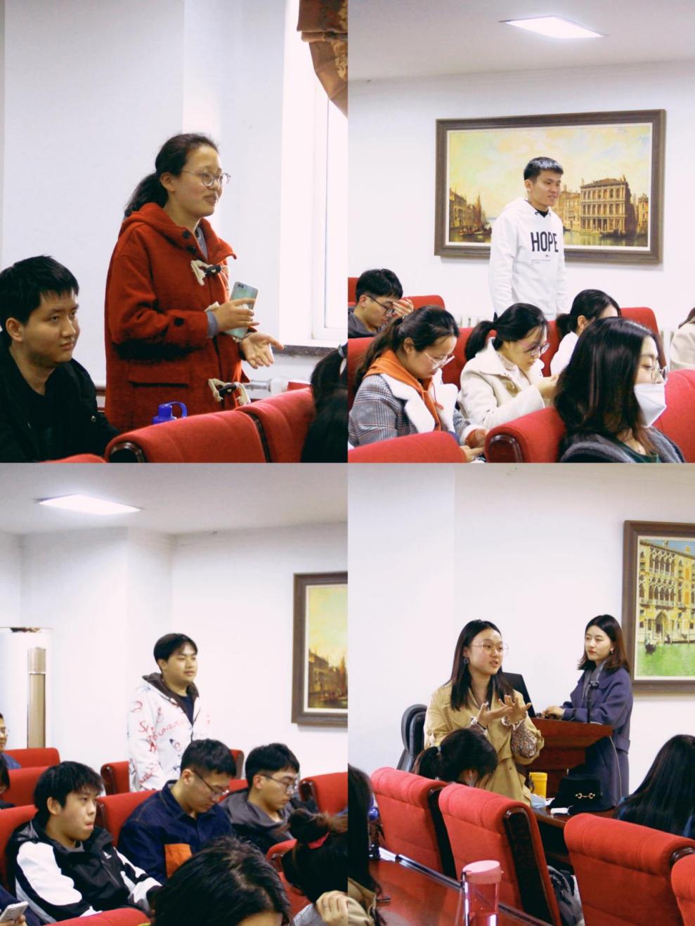 在经验分享部分,宋美超、王吉昊、王仔洋、赵宇玺四位同学从不同角度分享了他们在大学三年的感想。宋美超从学习角度,总结了考研准备阶段的心得,并表示决定未来人生的方向往往在于几个关键时期,应在彼时做出合适的选择。王吉昊倡议大家注重身体健康,所谓星光不负赶路人,应专注于自己的目标和前进方向,认真学习的同时也要照顾好身体。王仔洋表示在做未来规划时,应权衡个人能力和优势,脚踏实地方能通向自己的成功之路。赵宇玺真诚地感慨,大学校园的友谊中弥足珍贵,学院的同学、老师们就是她大学最大的收获。在全场真挚且热烈的掌声中,四位同学结束了各自的心得分享。