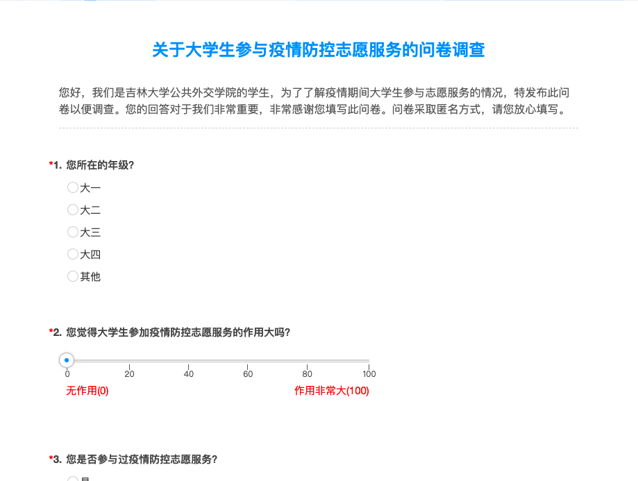 通过此次专项调研,团队成员深切地感受到了青年大学生的力量与热血。正如鲁迅先生所说,“青年所多的是生力,遇见深林,可以辟成平地的,遇见旷野,可以栽种树木的,遇见沙漠,可以开掘井泉的”。“在这次抗疫斗争中,大学生志愿者积极参与疫情防控志愿服务活动,彰显了青春的力量,交出了一份合格的答卷。此外,纸上得来终觉浅,绝知此事要躬行,如何在未来突发公共事件中进一步发挥青年大学生的重要作用,开展多样化机构协作和组织多形式多种类多渠道的志愿活动,仍需要我辈持续探索、付诸实践。