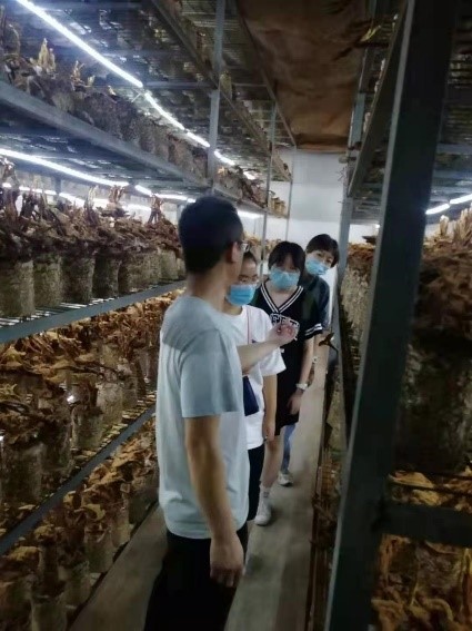 虽然疫情使得特色产业基地之行被取消,但实践队队员们在8月19日前往了位于银川市西夏区的贺兰山西路扶贫示范点——同阳新村。在村支书介绍示范点的总体情况后队员们走访了村民居所,实地考察了村民的工作、生活情况。实践团队获悉,在政府政策帮扶下,移民村现有的基础设施不断完善,居住条件也日益改善,这让成员们亲身体会到了扶贫政策带来的变化。随后,队员们在车间负责人的带领下参观了该村特色食用菌产业基地。负责人在向团队成员介绍车间的生产状况时信心满满地说到:“满负荷时可达到50吨产值”。除此以外,基地将创新销售模式与传统产品相融合,推出灵芝造型等别具匠心的“网红”产品策略,最终形成了产业链式的一体化模式。通过对两地的走访,队员们看到两村村民对乡村振兴均表现出的蓬勃信心。在交谈中,村民们纷纷表示会坚决支持习近平总书记的“脱贫不脱政策”,努力发展特色产业,用自己的双手创造条件,奔向美好生活。