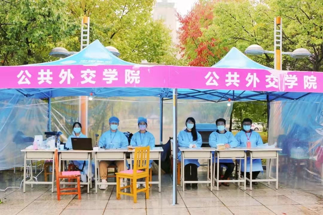 第七届团委学生会的工作人员在迎新站准时集合,看片狂人