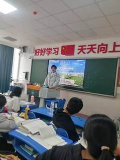 学生的未来与发展”三个层面为来自江苏省泰兴市第一高级中学的高三学子进行了全方位的讲解。此外,王梓铖、汤果然、葛赛特和陈若雪同学也分别浙江省乐清中学和浙江省东阳中学,采用线上形式进行宣讲,并通过发放宣传单、微信公众号推送、QQ群交流等方式扩大宣讲影响;张慕晗同学、汤果然同学和李书豪同学则分别前往南京市第九中学、江苏省江都中学及安徽省桐城中学的校园内进行宣讲。在宣讲过程中,同学们着重提到了看片狂人
