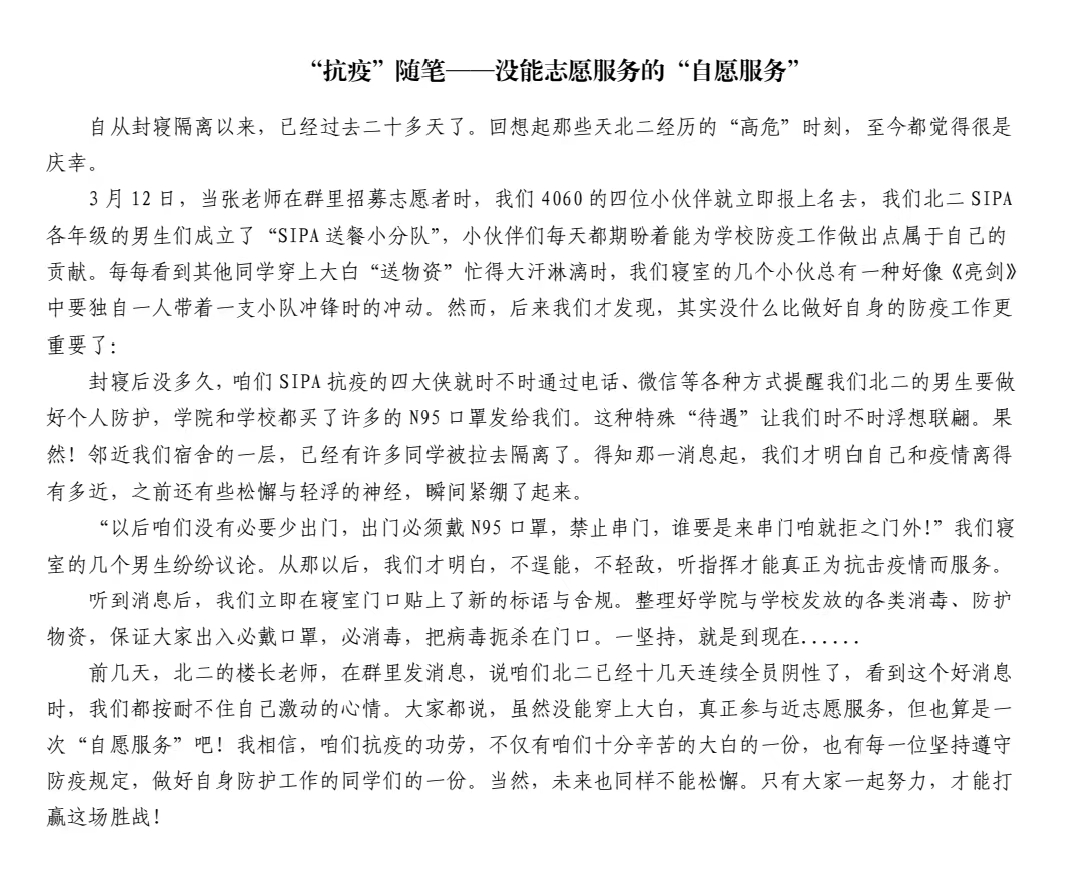 团委于2022年3月中旬积极开展了“青春抗疫”札记征文活动。
