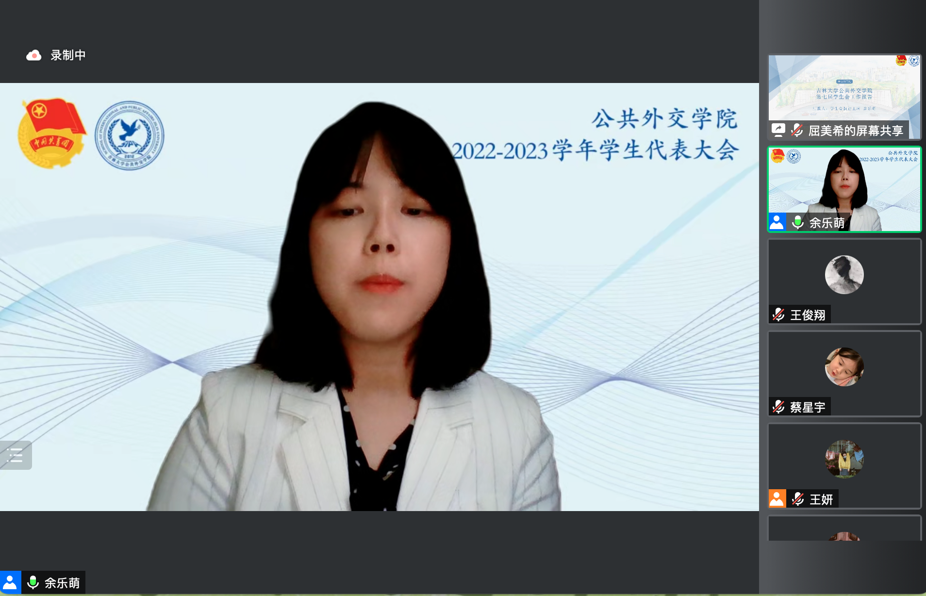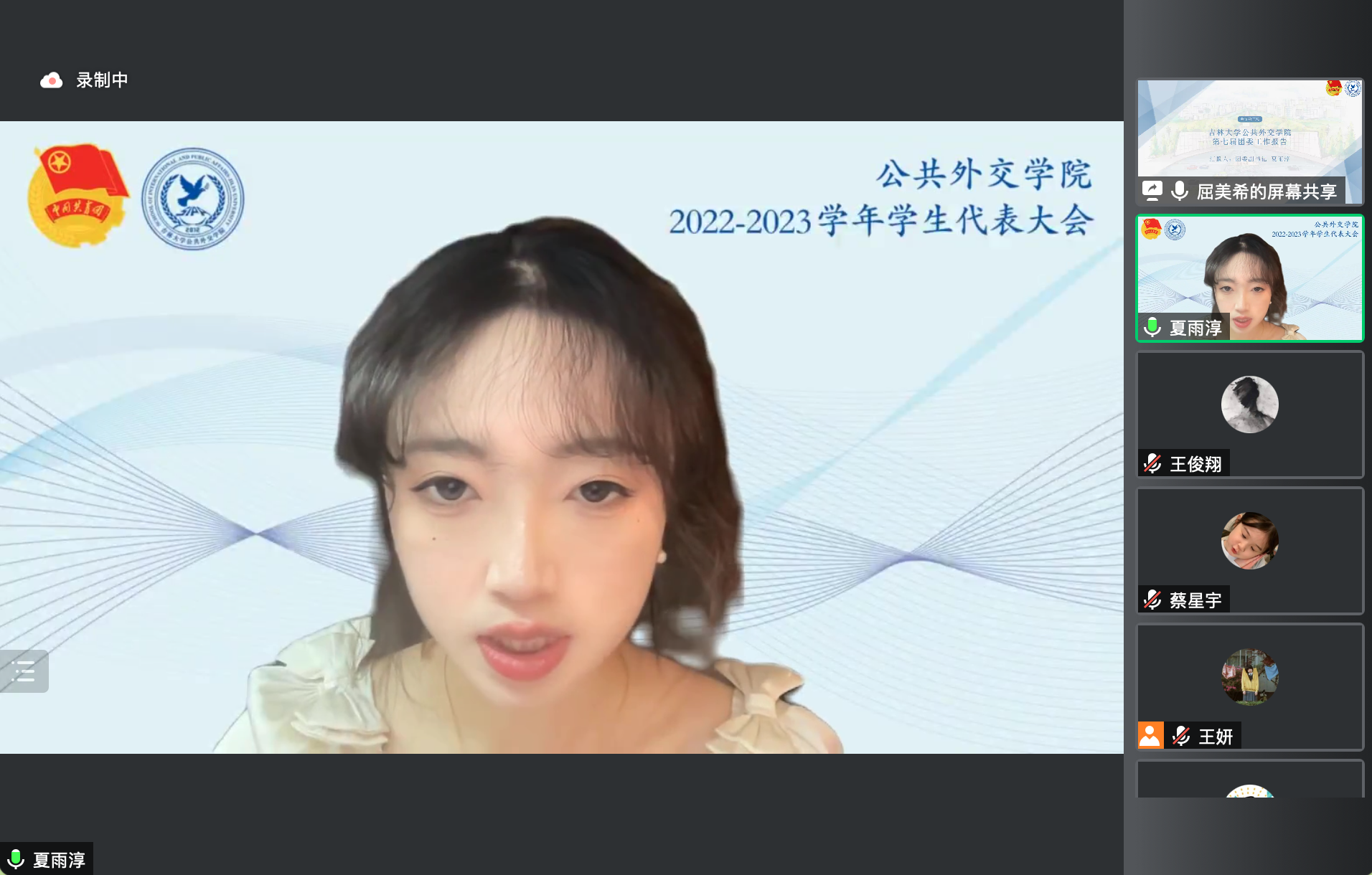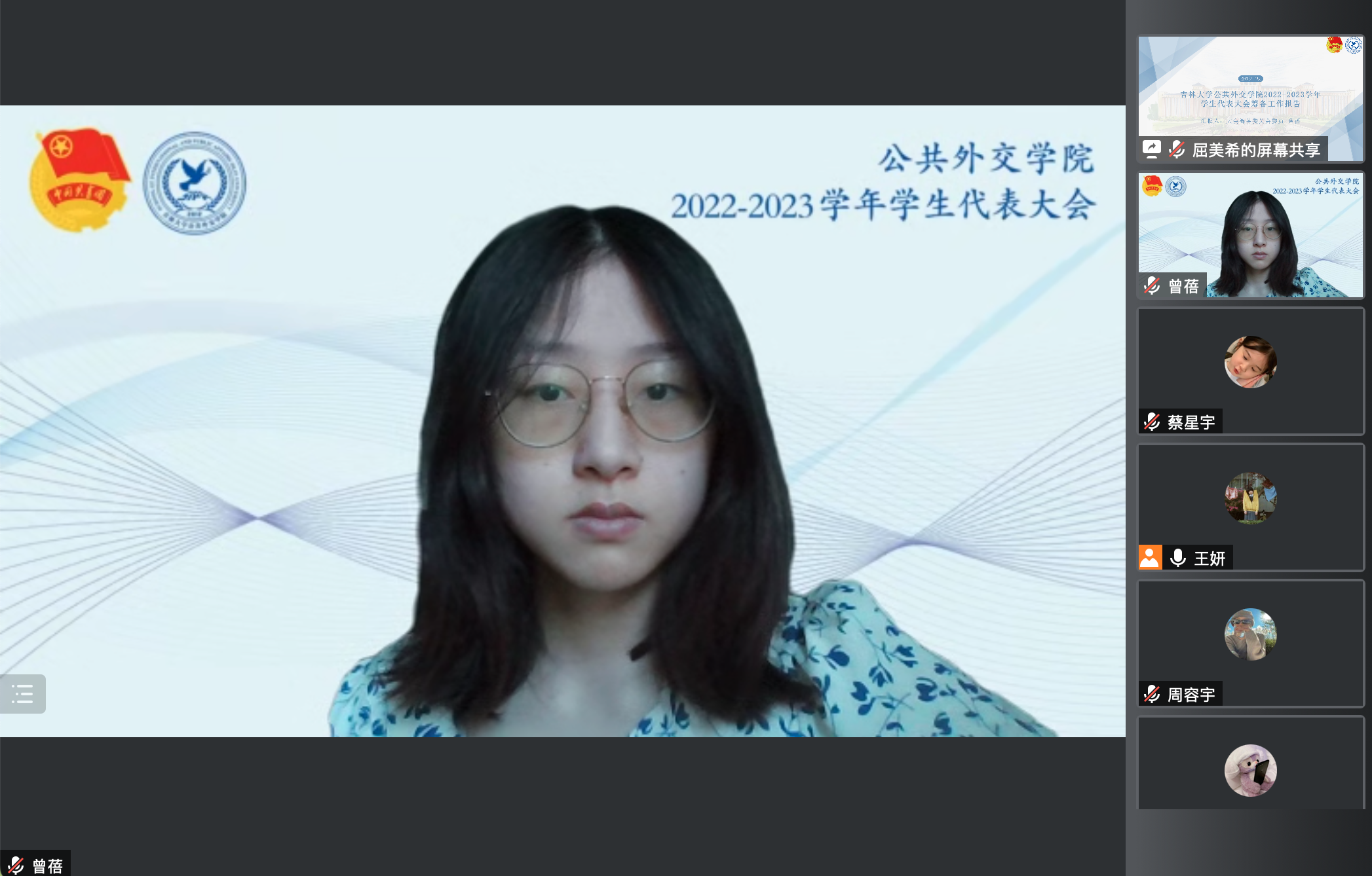 线上召开2022-2023学年学生代表大会,集体表决通过第七届团委、学生会工作报告,并顺利完成团委、学生会主要学生干部换届选举工作。全院35名学生代表参加了会议,学院党委副书记兼副院长王力老师、学生工作办公室主任张淑艳老师、团委负责人樊鸿刚老师、辅导员单葆龙老师出席会议。本次会议由大会筹备委员会委员屈美希主持。