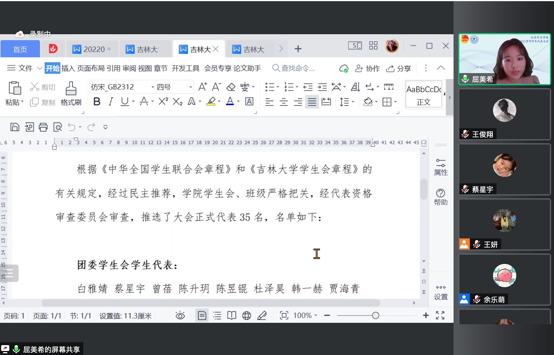 第七届学生会工作报告》,向全体代表汇报了学生会在组织改革、师生服务、学风建设、文体活动以及抗击疫情等方面的行动与取得的成绩。
