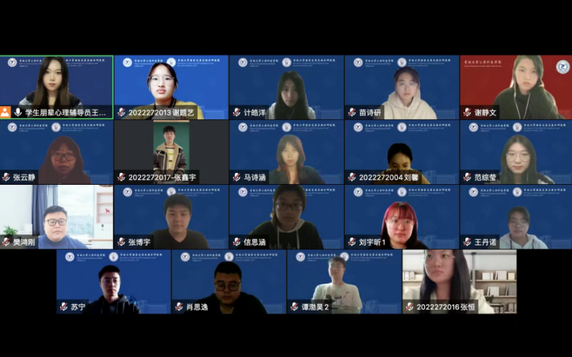 、国家发展与安全研究院,通过线上线下结合的方式为2022级全体研究生开展了“我们是相亲相爱的一家人”新生团体心理辅导活动和“在线心灵沟通”主题班会。活动由研究生朋辈心理辅导员王艺蒙主持,2022级全体硕士研究生参加本次活动。