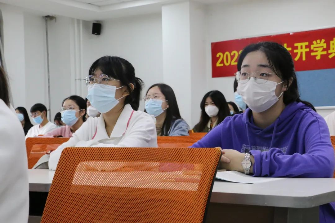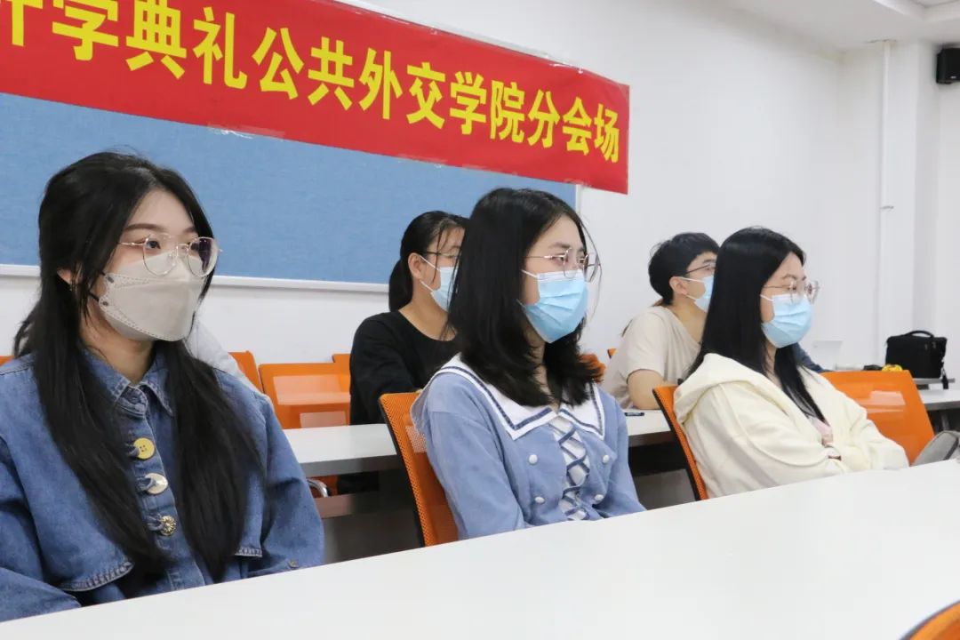 党委书记杨民老师,副院长于洪生老师,党委副书记兼副院长、纪委书记王力老师,2022级本科生班主任邹晓龙老师、李明老师,研究生秘书于晴老师,辅导员单葆龙老师和同学们一起观看典礼。