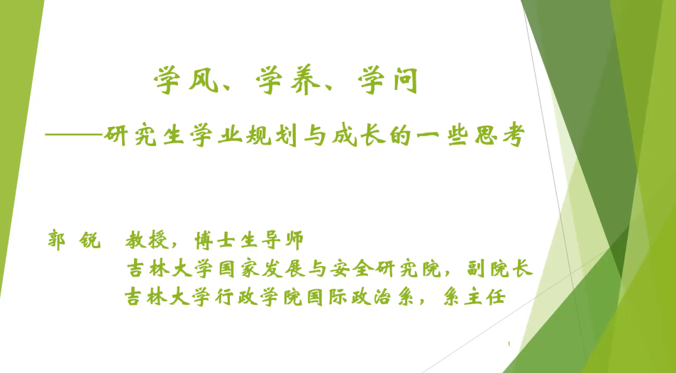会议伊始,郭锐教授分别从“学风、学养、学问”三个角度和同学们分享了他对研究生学业规划与成长的一些思考。
