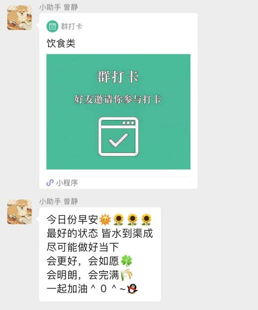 在打卡小助手的早安祝福中