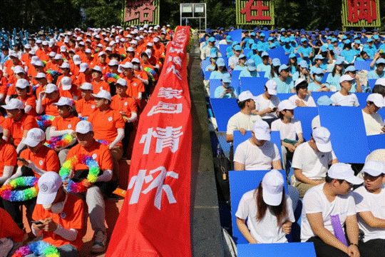 学子青春的魅力。当一把把红伞拼出五星国旗时,一列白鸽围绕着国旗飞扬,寓意着始终以党和国家为中心,正如那嘹亮的口号:世界眼光,家国情怀;立足中国,放眼未来。