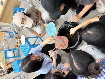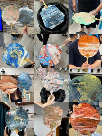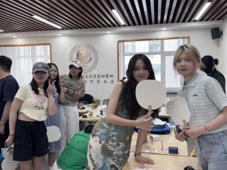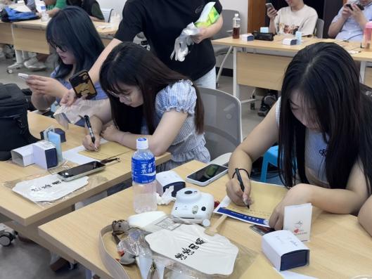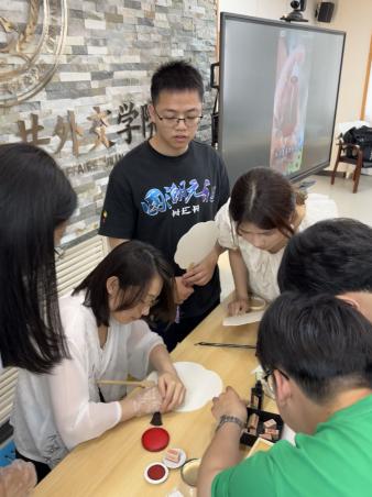 活动当天,在团支书白雅婧、杨新悦的讲解下,同学们认真挑选心仪的色彩与图案,亲手绘制专属于自己的毕业纪念扇。辅导员张老师用“吉大外交”“吉中吉”等印章为同学们留下专属印记并送上美好祝福。漆扇的一笔一划不仅展现了个人的艺术风采,更蕴含着毕业生对未来生活的想象与对母校的深深眷恋。